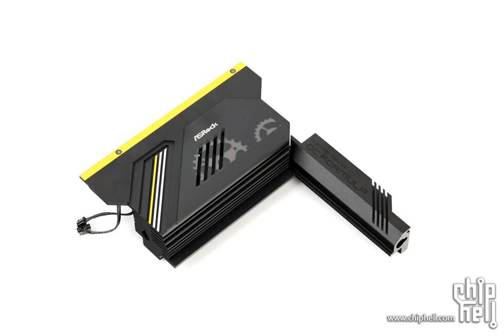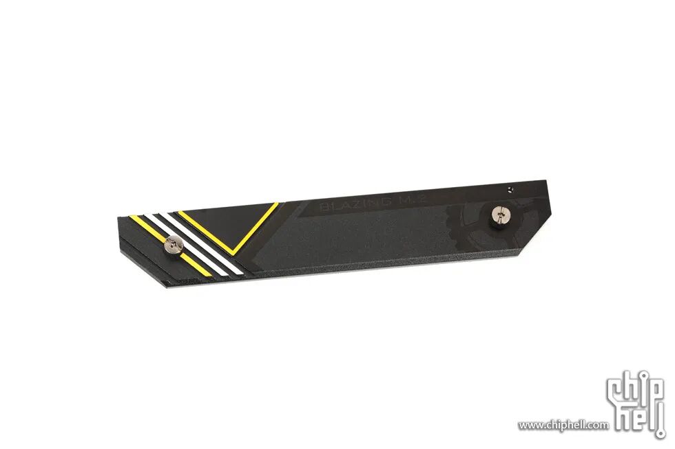 第二根独立式的M.2散热装甲,表面同样设有斜向条纹以及文字和齿轮的装饰.