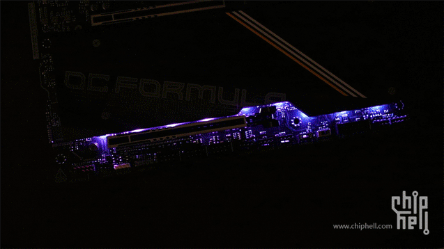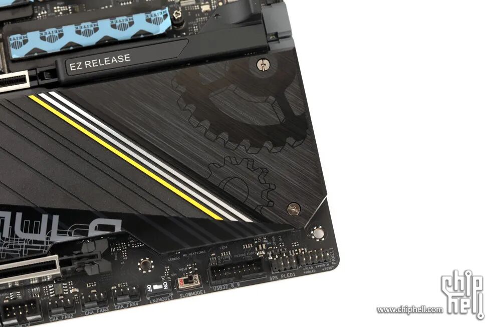 下部的整片式M.2 SSD散热装甲,在装甲底部设有RGB灯珠.