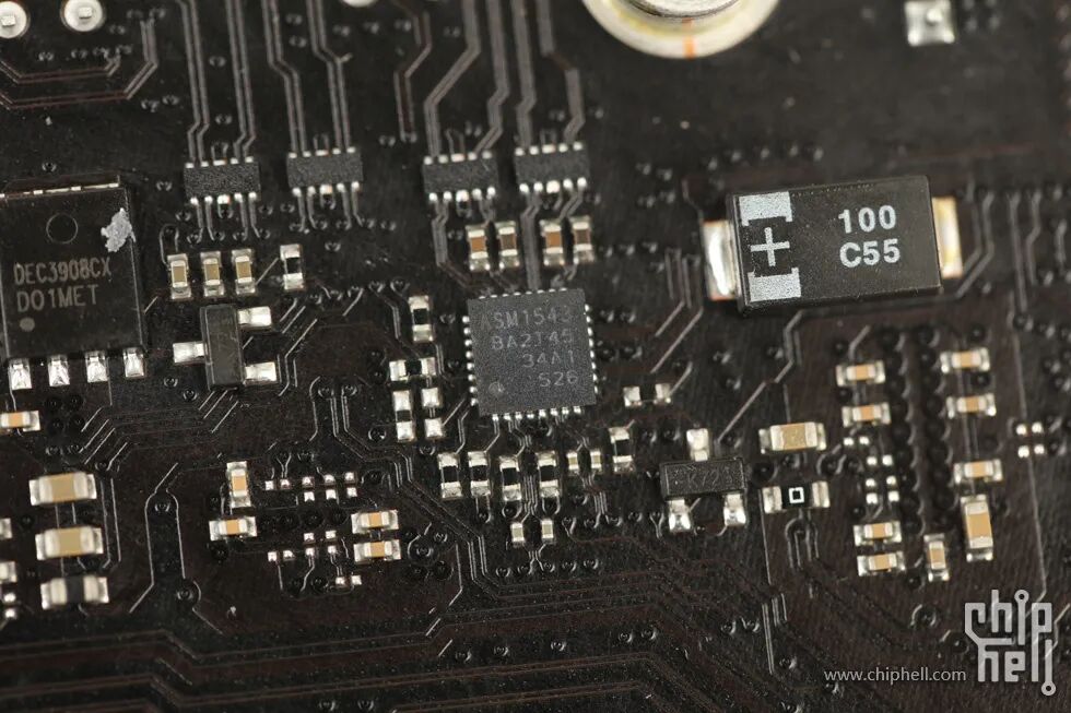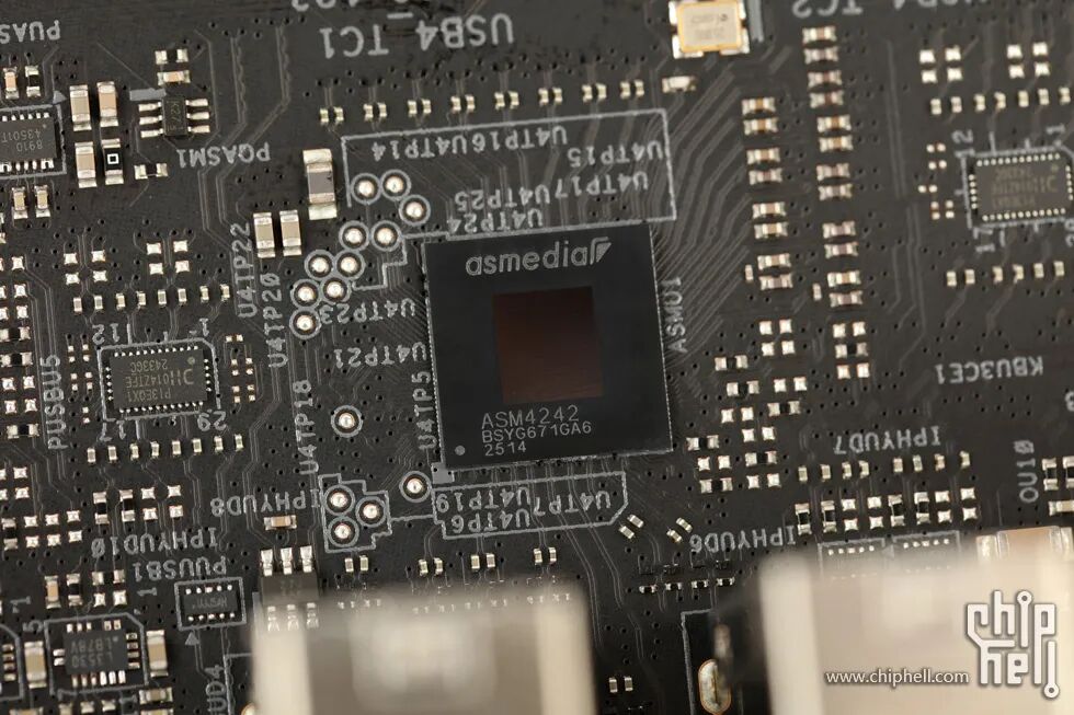 主板背面的ASM1543芯片,为前置Type-C接口提供支持.