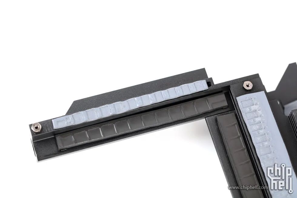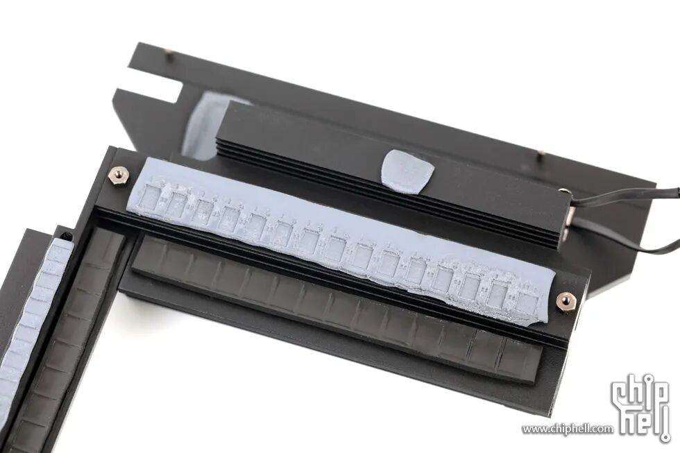 所有附件卸下后,最后将背板卸下,背板内侧在供电和芯片组处均设有导热垫.