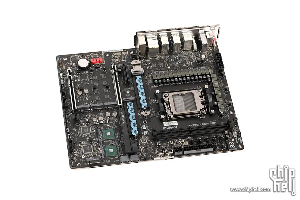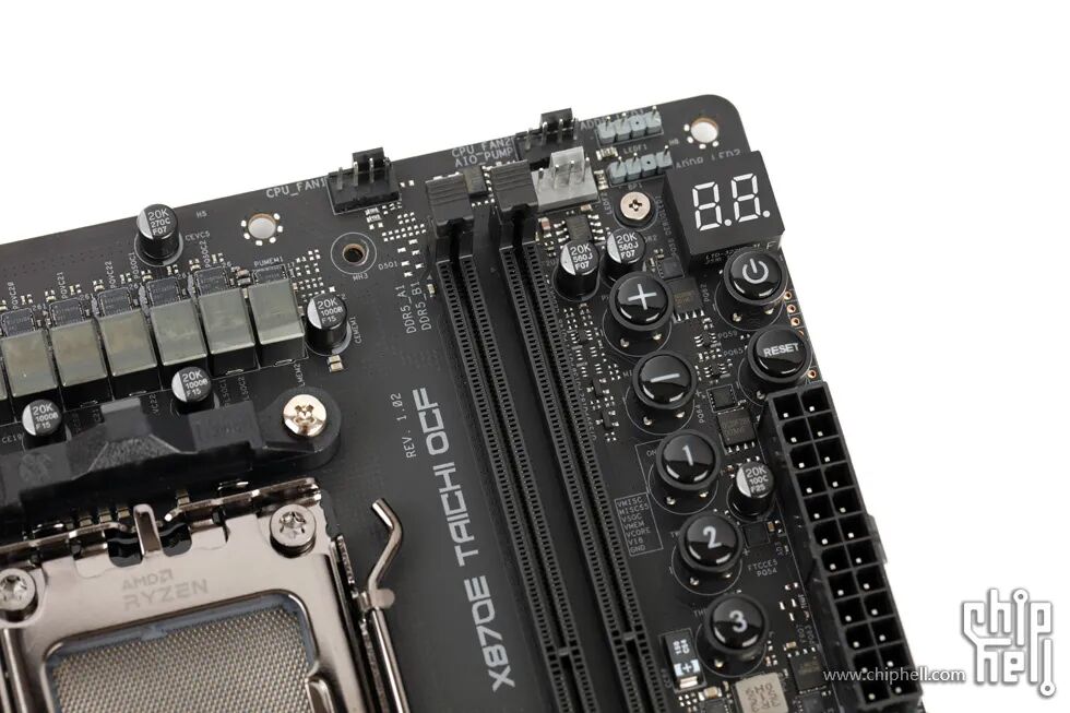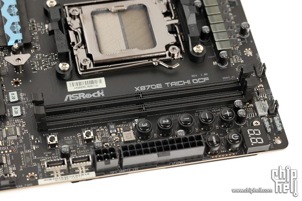 随着华擎将主打极致超频的OCF型号也纳入到旗舰Taichi系列中,而本次来到工作室的就是华擎最新的AMD平台超频主板,ASRock X870E Taichi OCF.它采用了10层PCB,22+2+1相供电以及多达6个M.2 SSD插槽,可以说用料十足,下面来看看它的表现如何.