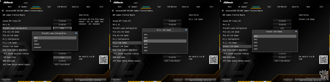 各个通道Gen模式的指定也被放置在该PBS菜单中,并支持通道拆分.