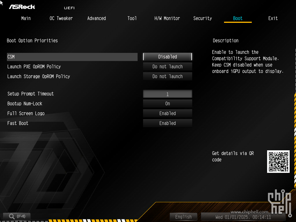 进入BIOS后直接进入更多选项的进阶模式,无简易模式.
