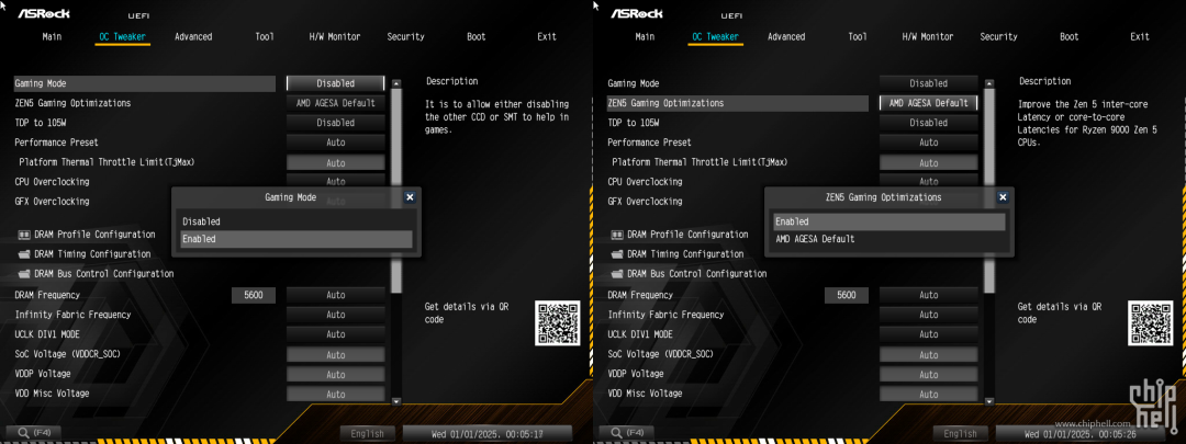 设有游戏模式以提升游戏性能;并针对Zen5处理器还有专门的延迟优化模式.