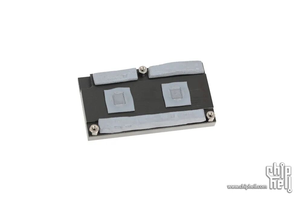 散热模组配以一根热管,贯穿两个散热模块,用于更好的均衡发热.