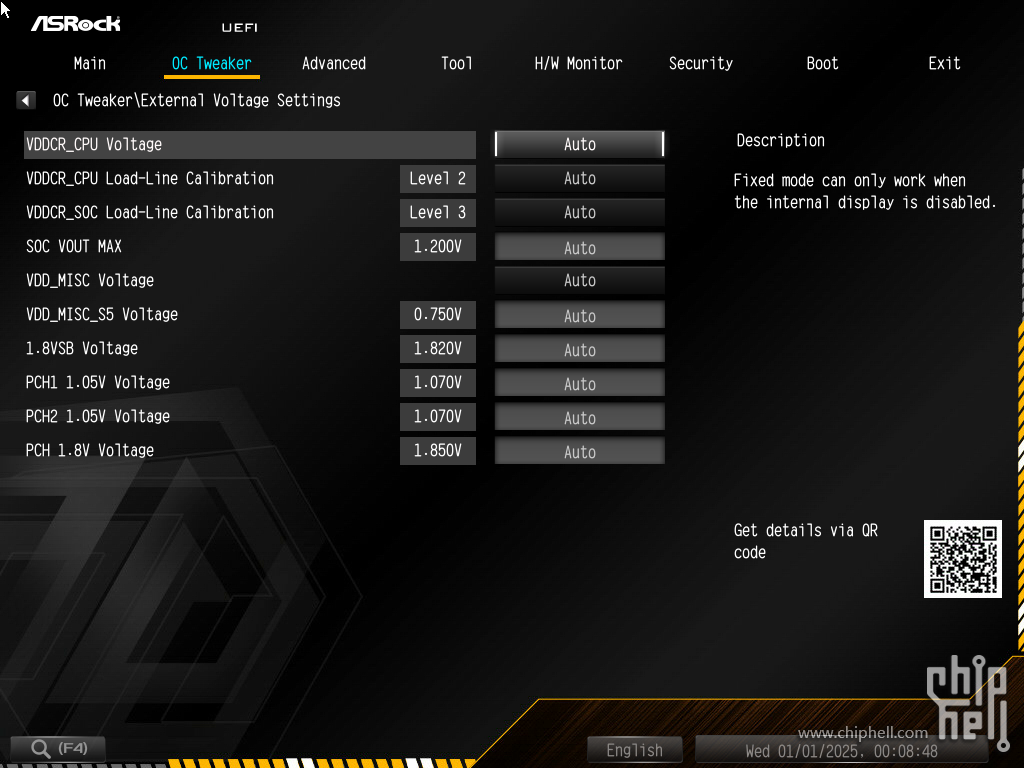 CPU/SOC的负载防掉压选项,以及一些其他额外电压调节,则被收录在额外电压子菜单中.