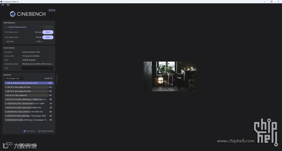 Cinebench 2024测试结果为多核心1241 pts,单核心为127 pts。