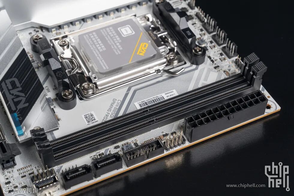 2条DDR5内存插槽,原生最大4800MHz,超频最大8000+MHz,容量最大96GB,支持XMP 3.0以及AMD EXPO。