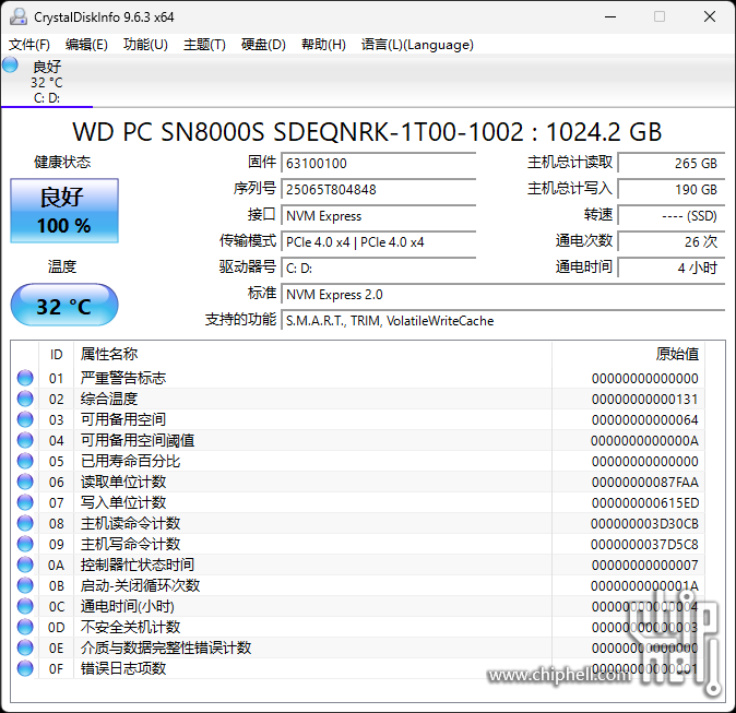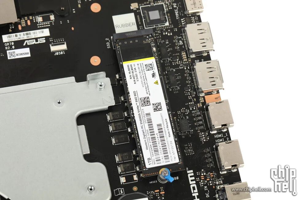 SSD硬盘配备一块1TB NVMe M.2 SSD,为PCIe 4.0 x4规格,型号为西部数据SN8000S.
