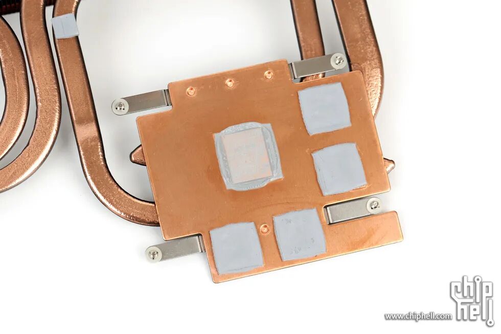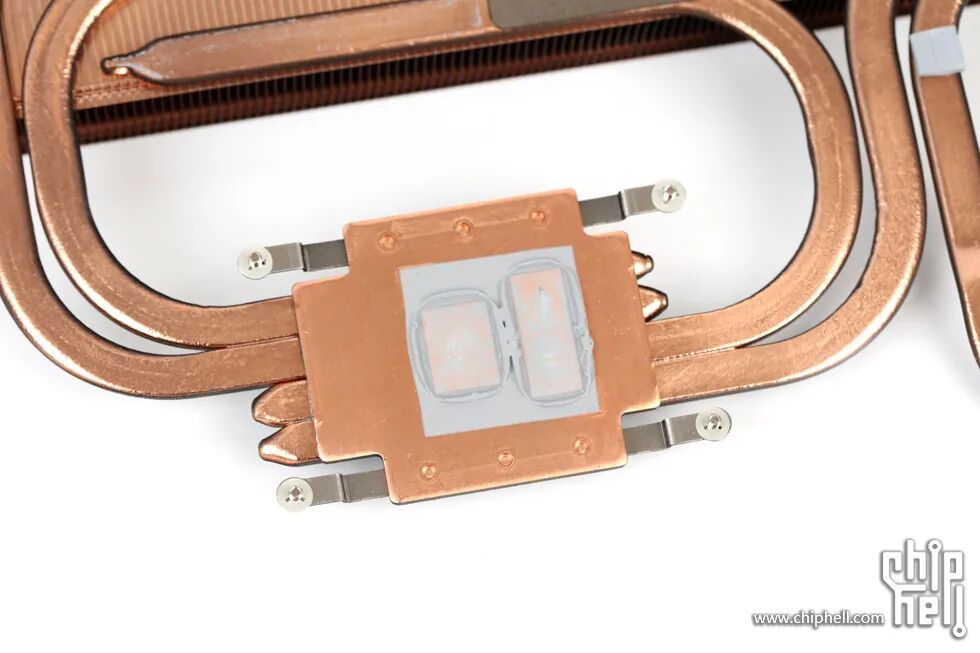 散热模组鳍片置于风扇出风口处,同时气流可以对周边的内存降温.