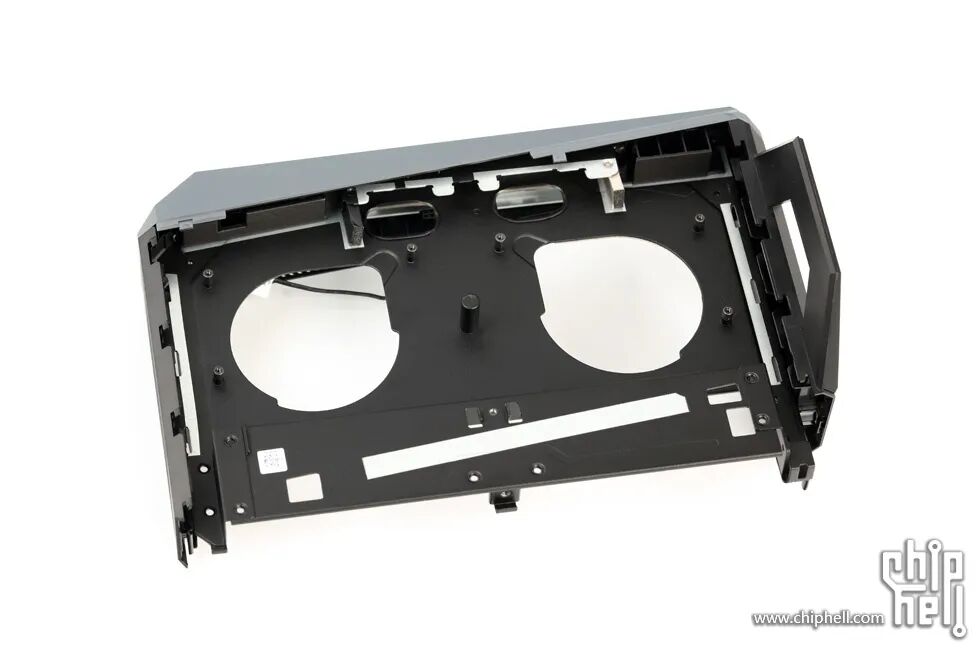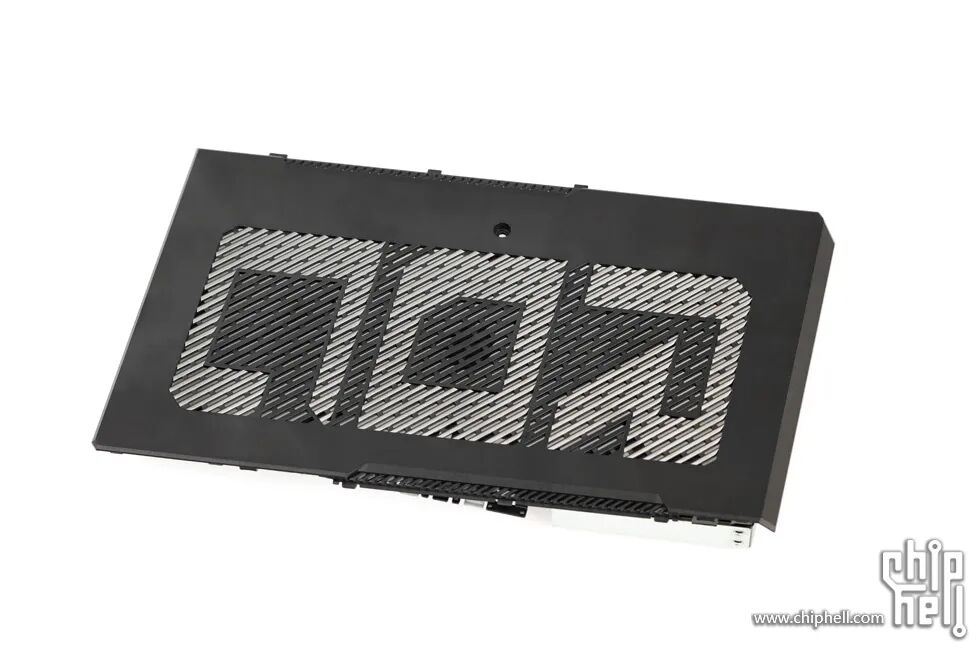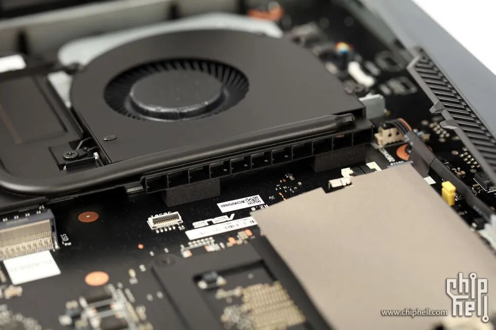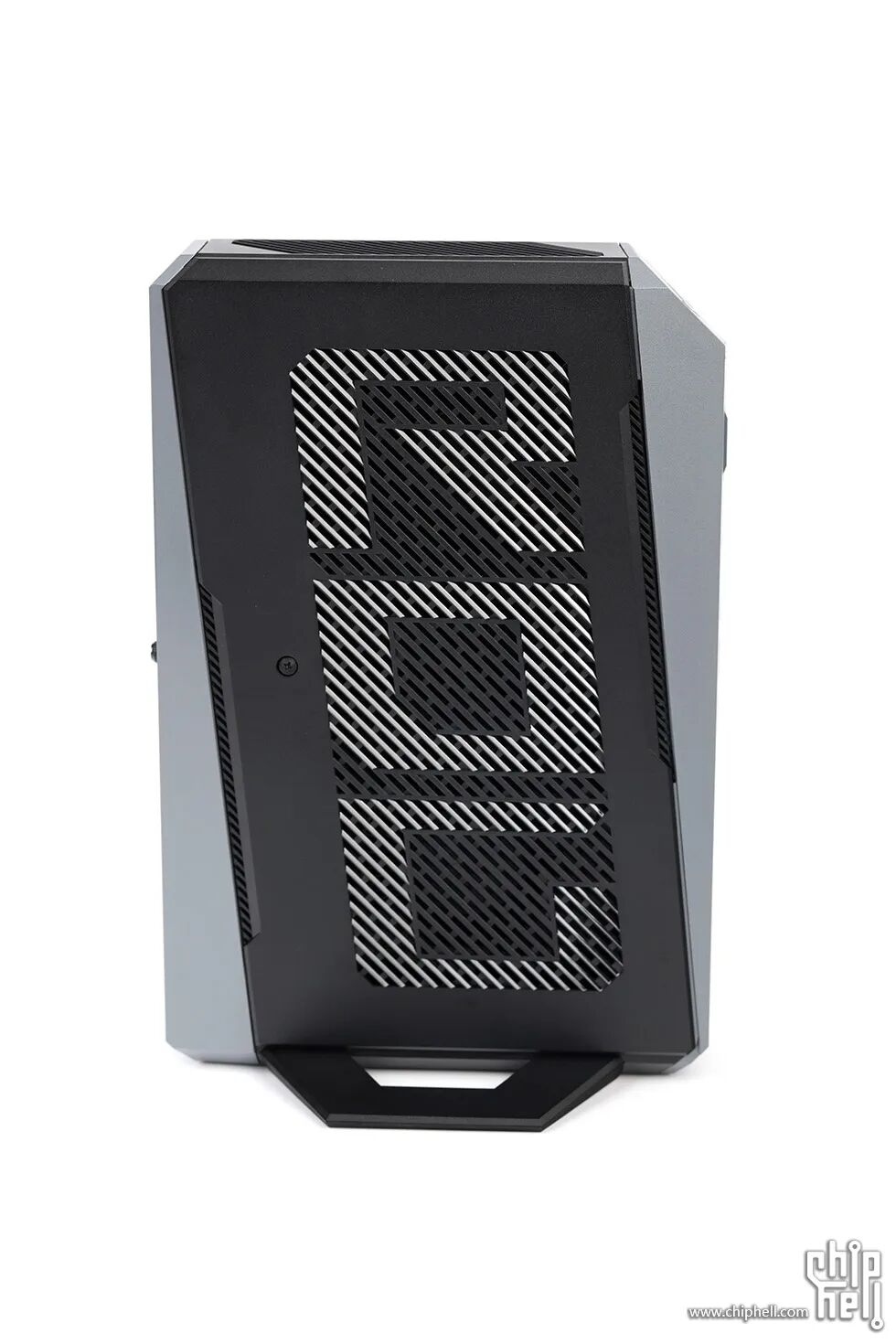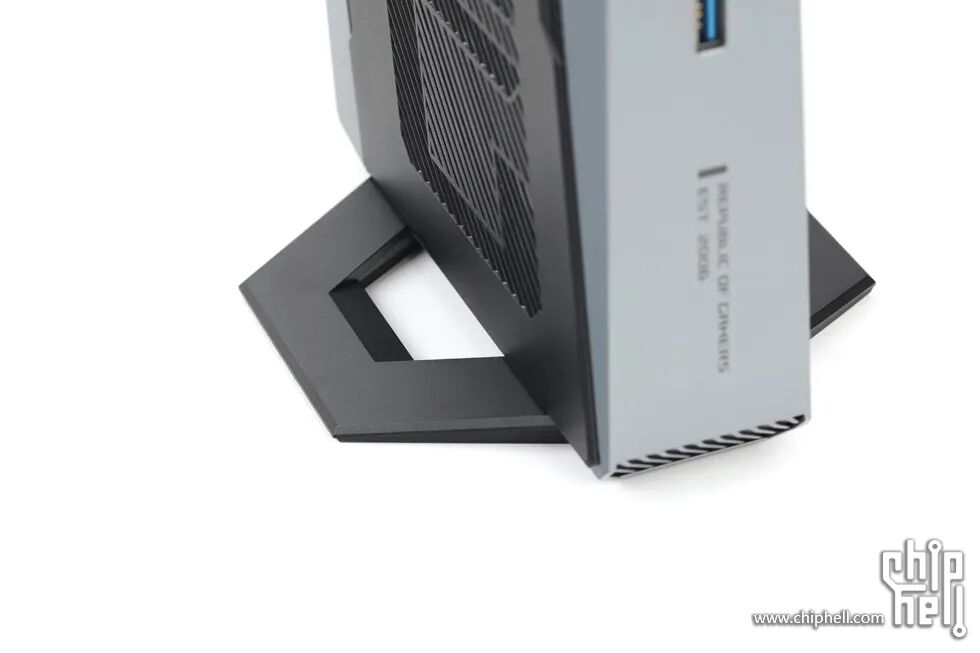 在ROG之眼下方,则配有一个外露式的风扇开孔区域,在右侧设有ROG装饰字体.