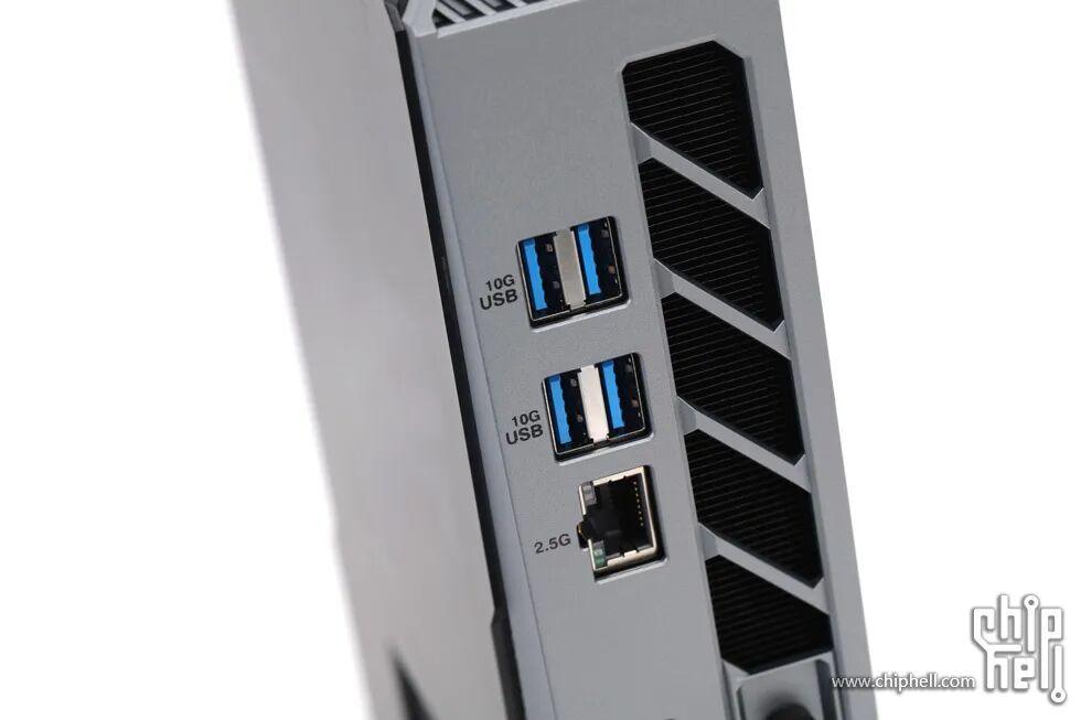 后置I/O区域,上半部分设有4个USB 10Gbps Type-A接口以及1个2.5Gbps有线网口.