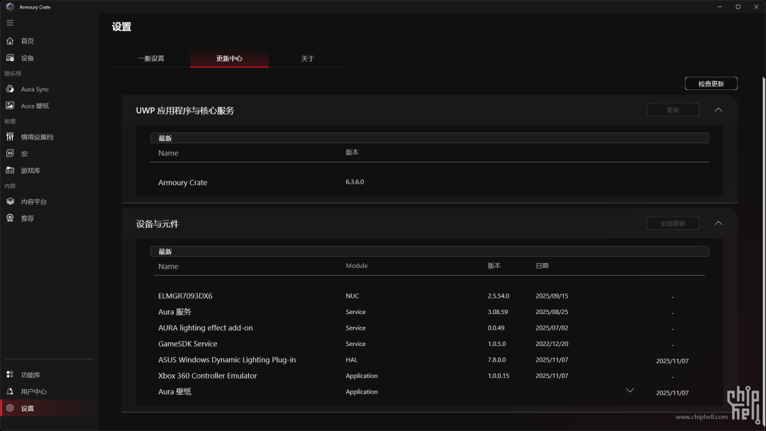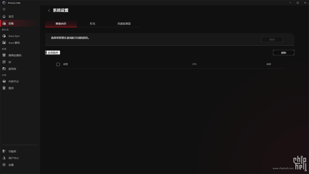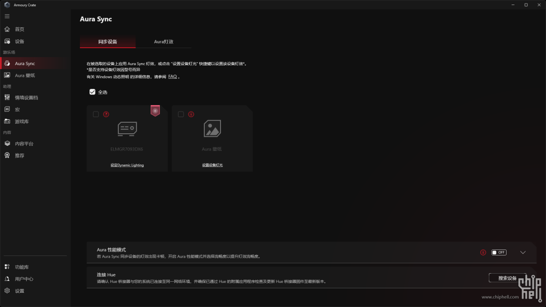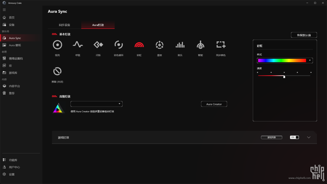 Aura Sync页面,可与其他外接支持Aura的设备,以及Aura壁纸组建,共同组成一套完整的灯光链.