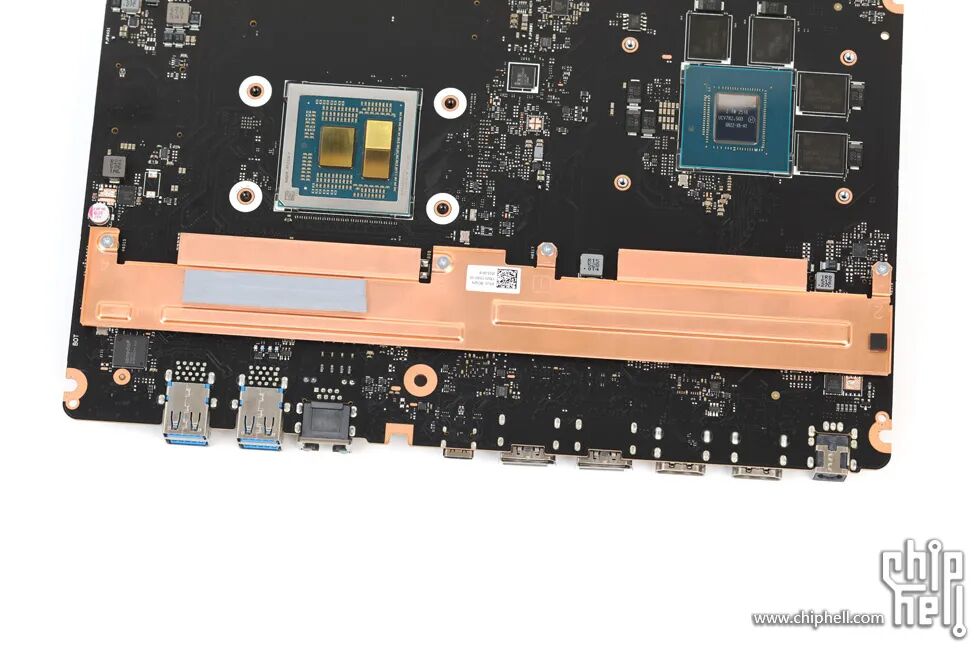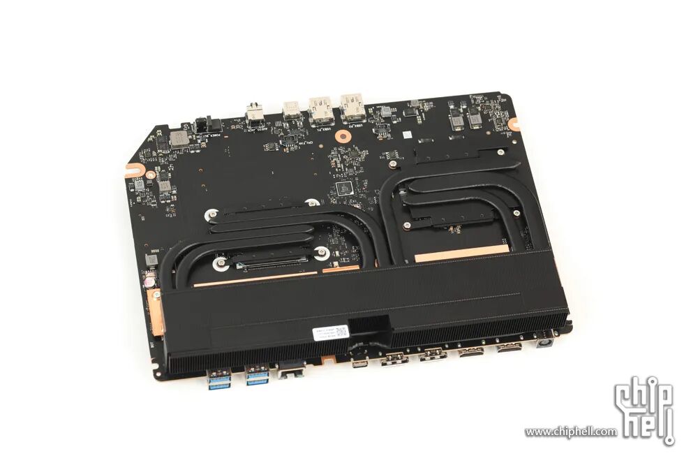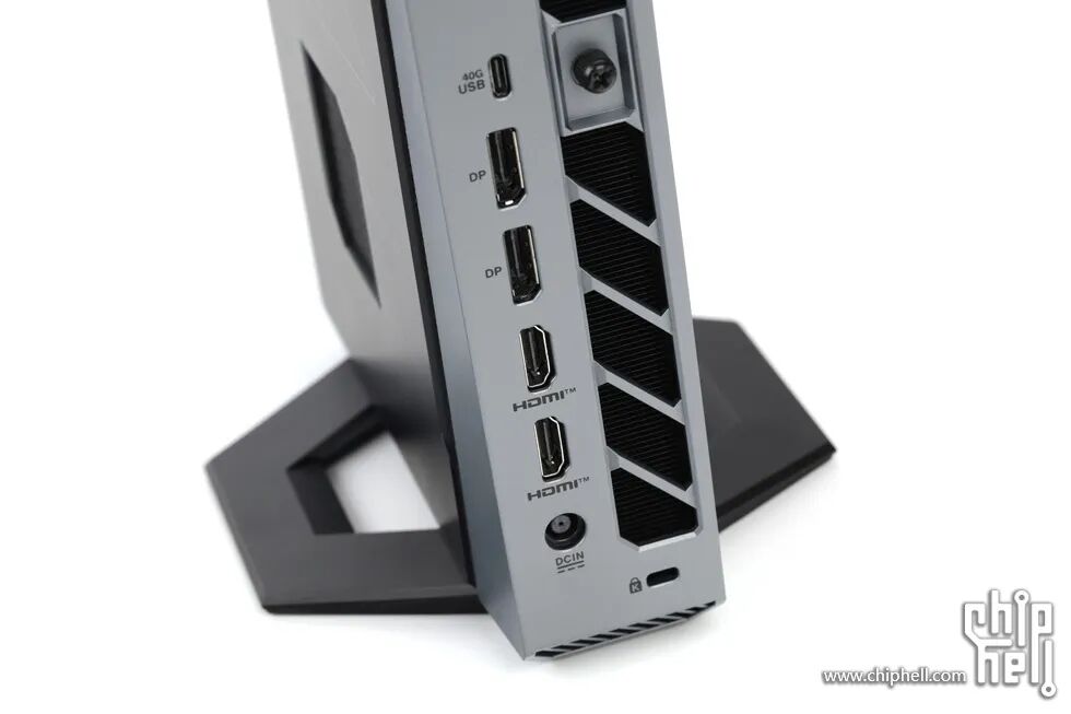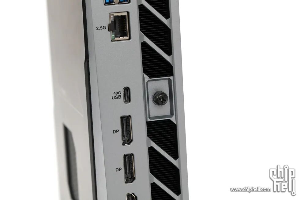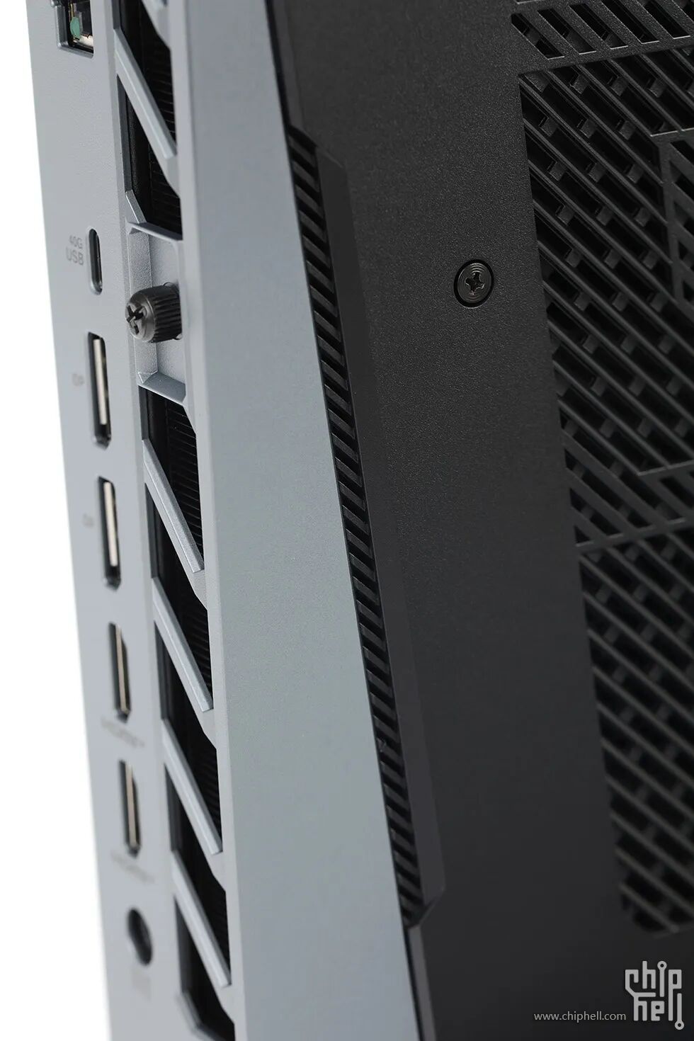 下半部分设有1个USB 40Gbps接口(支持DP 1.4输出),2个DP 2.1接口,2个HDMI 2.1接口,1个电源接口以及1个防盗锁插孔.