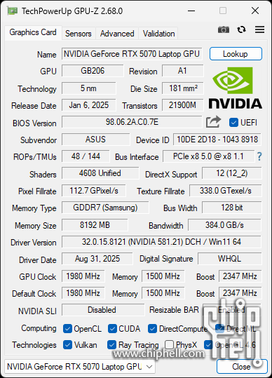 NVIDIA RTX 5070 Laptop GPU显示核心.