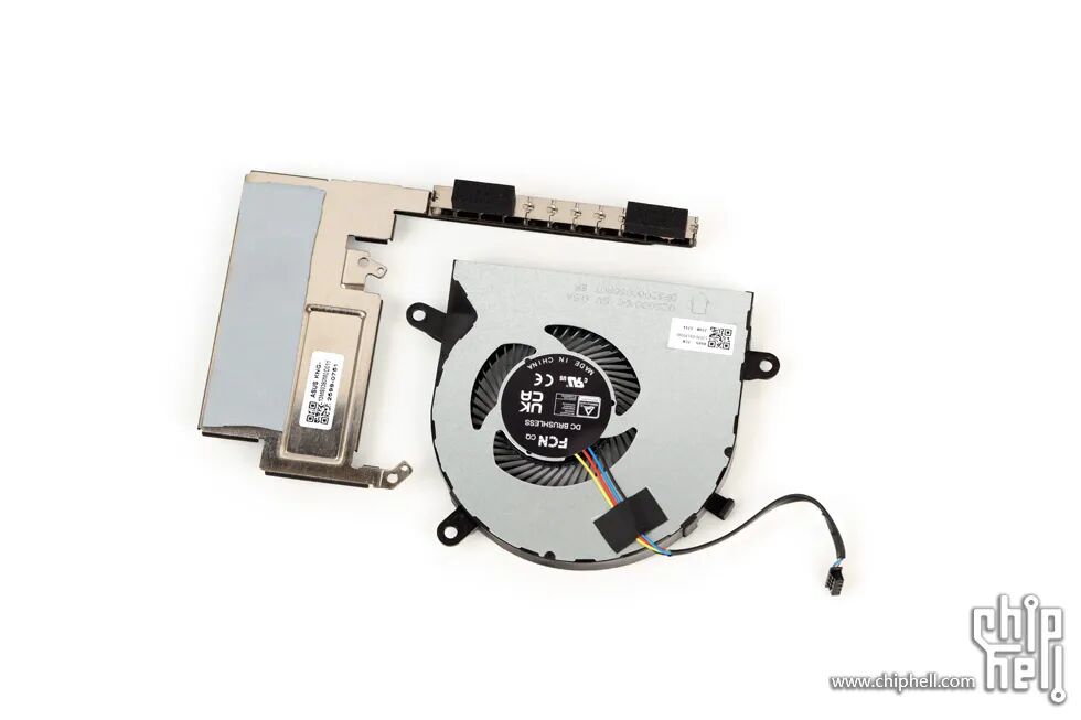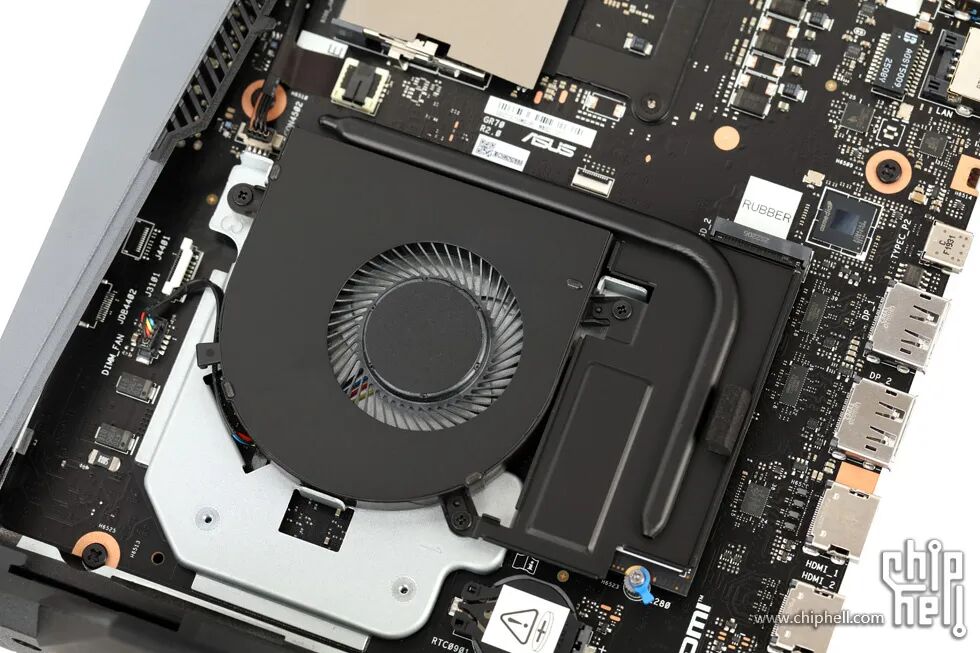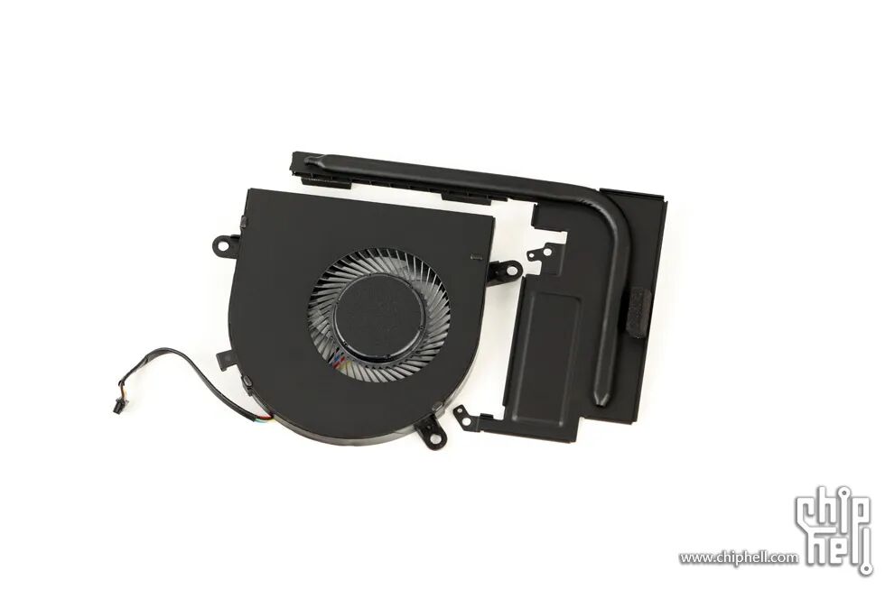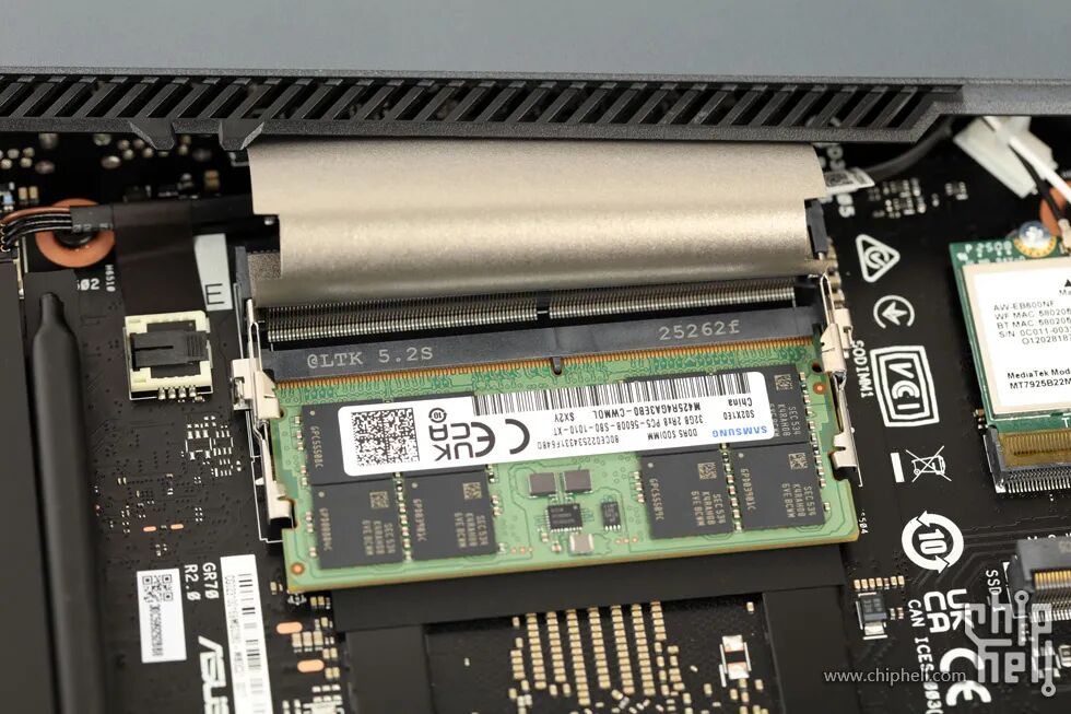 风扇旁边为2条叠放的SO-DIMM内存插槽,出厂仅预置1条.