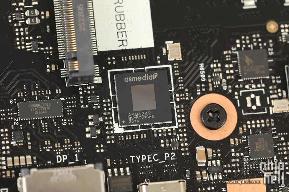 Wi-Fi网卡旁的第二条M.2 SSD插槽,最高速率为PCIe 4.0 x4,长度仅支持2280规格.