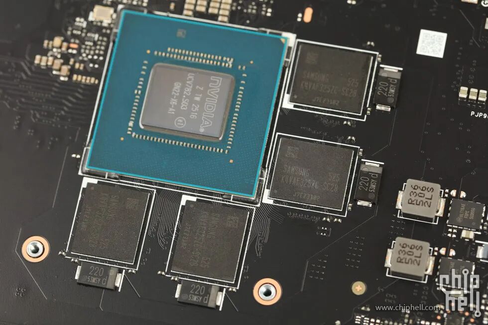 四颗来自于三星的GDDR7显存颗粒,共组成8GB容量.