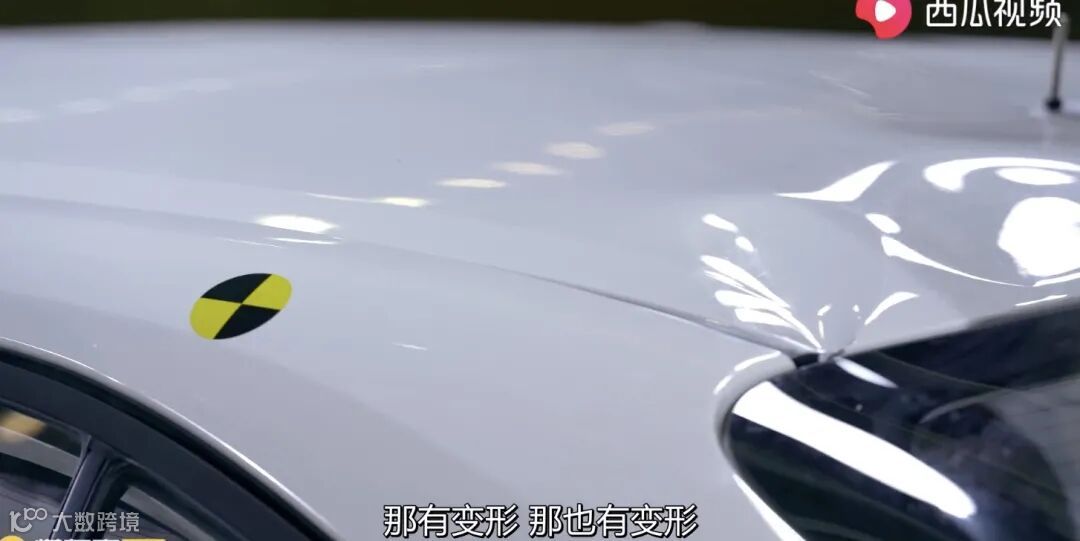 另外,从丰田卡罗拉车顶处可以也看到多处变形,卡罗拉通过整个车身进行吸能。