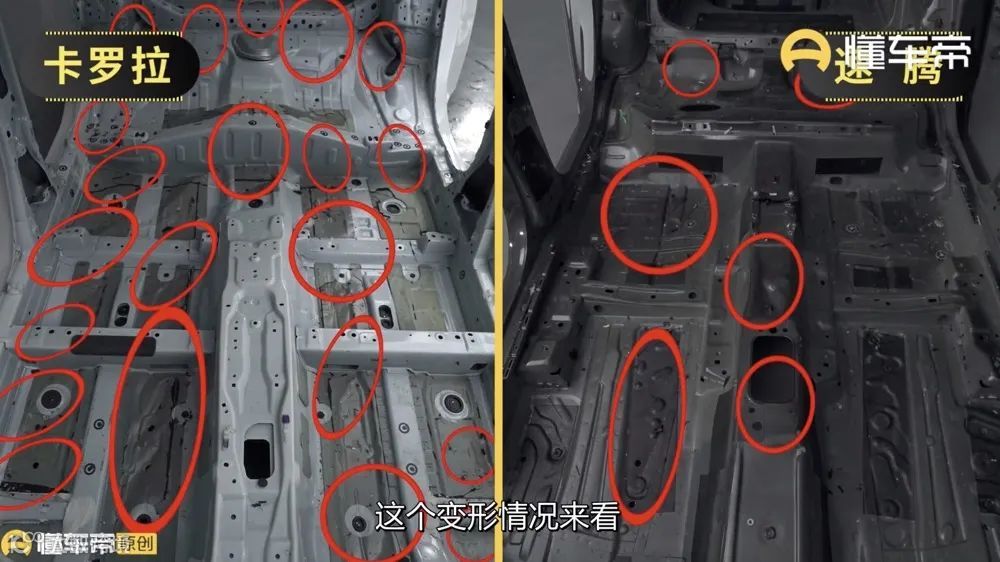 从两款车的表现来看,日系品牌的丰田卡罗拉的溃缩程度更为明显,而作为德系代表的大众速腾无明显溃缩情况。由此可见,丰田卡罗拉碰撞后的结构表现弱于大众速腾。