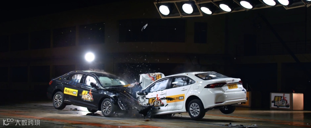 1月17日,字节跳动旗下汽车媒体平台“懂车帝”发布了丰田卡罗拉和大众速腾正面对撞的碰撞测试视频,该媒体采用双车64公里/小时的50%偏置对撞。也就是说,在碰撞试验过程中,丰田卡罗拉和大众速腾均以64公里/小时的速度、50%的重叠率(驾驶员侧)完成对撞,最后根据车体变形程度及假人伤害数据进行评价。
