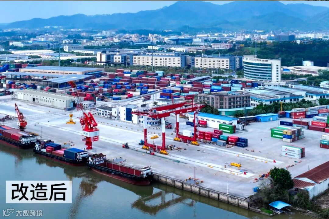 花都智慧港能力提升一期工程成效显著,远控轨道吊投入使用,让传统码头一跃成为动线清晰、设施规整的现代化港区。