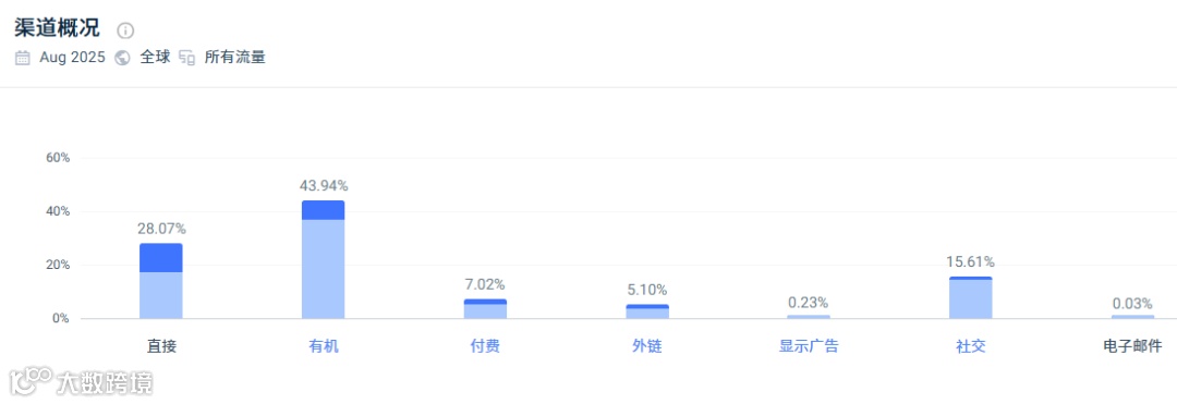 根据SimilarWeb数据,其独立站月均访问量达到近19万次左右,其中自然流量占比高达72.01%,社交媒体引流占15.61%。