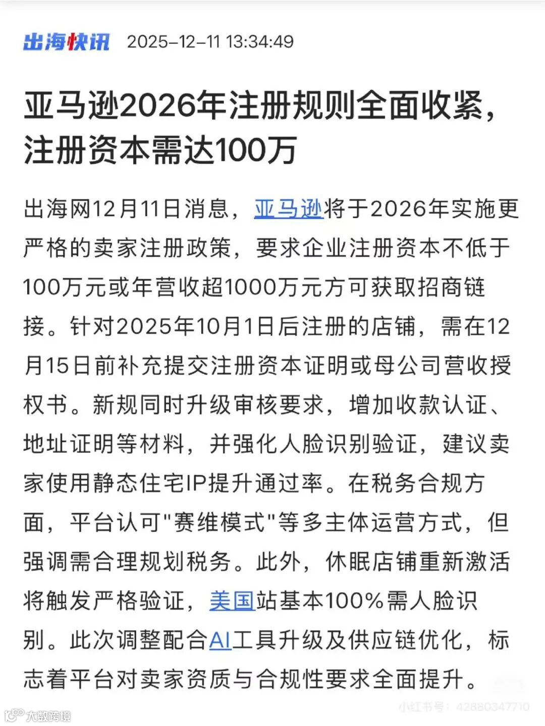 近日,一则关于亚马逊2026年将提高卖家注册门槛的消息在跨境电商圈引发热议。