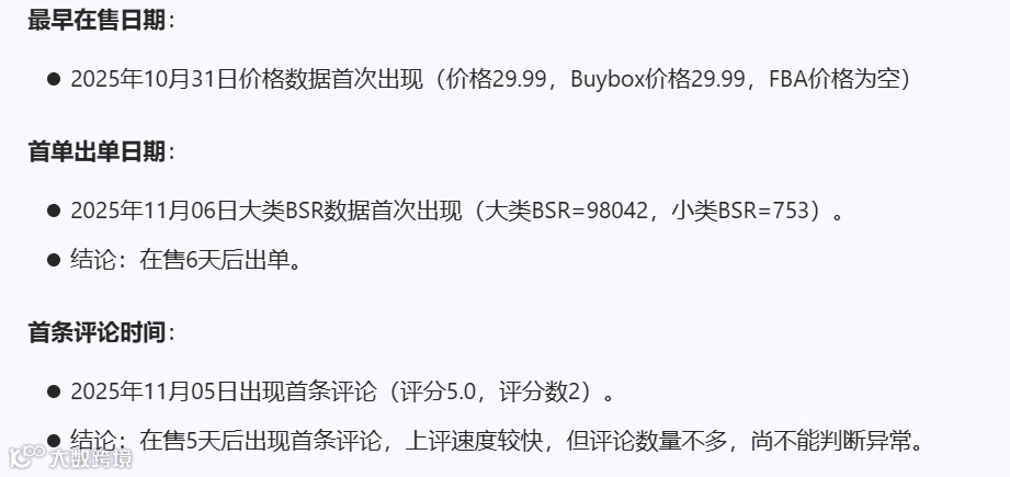产品在短时间内积累了初步的评论,且BSR排名和子体销量均呈现快速上升趋势,尤其在旺季促销期间表现突出。