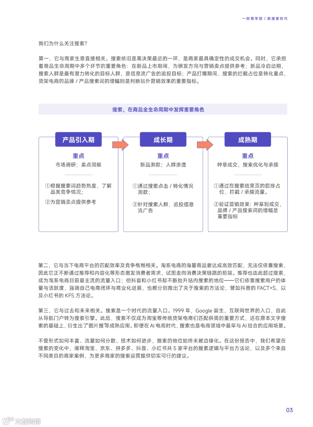 为帮助商家应对新搜索时代的挑战,财商学院发布《新搜索时代:2024五大平台实操指南》,系统梳理淘系电商、京东、拼多多、抖音、小红书五大平台的搜索逻辑、流量结构与实操策略。报告涵盖选词布局、内容种草到流量承接等关键环节,结合典型案例,提供可落地的全域搜索运营解决方案。