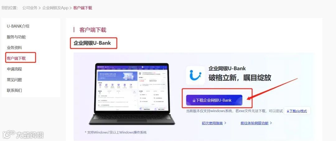 二、进入U-BANK登录界面