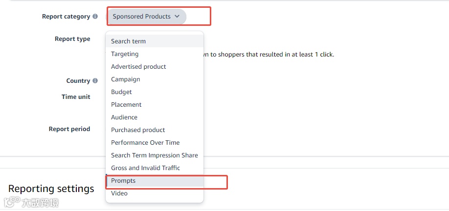 在SP广告报告下载页面选择“Prompt”选项,即可导出专属分析报告(SB广告暂不支持)。