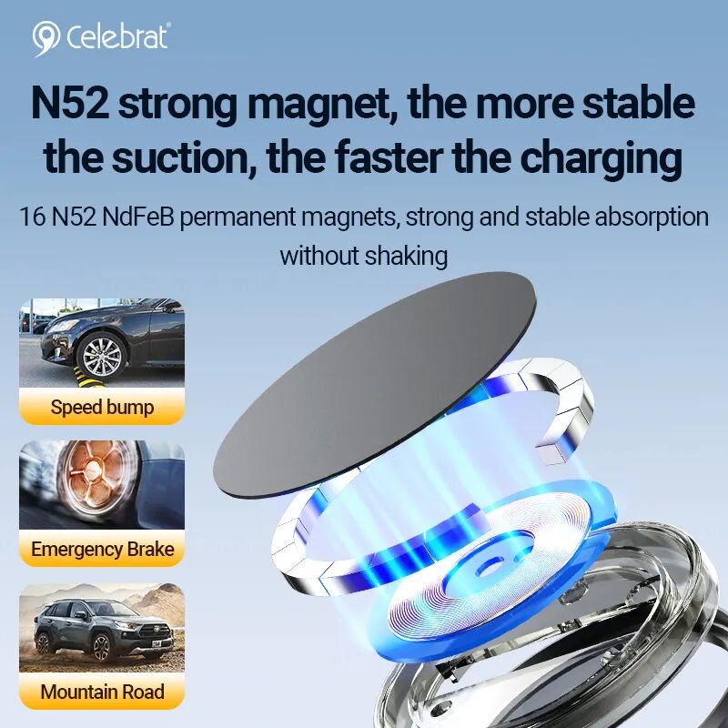 1. **Lightning-Fast Magnetic Charging:** Built-in 16 N52 strong magnets provide a stable, one-touch magnetic connection and wireless charging for iPhone 12-15 series devices, ensuring uninterrupted power while driving.