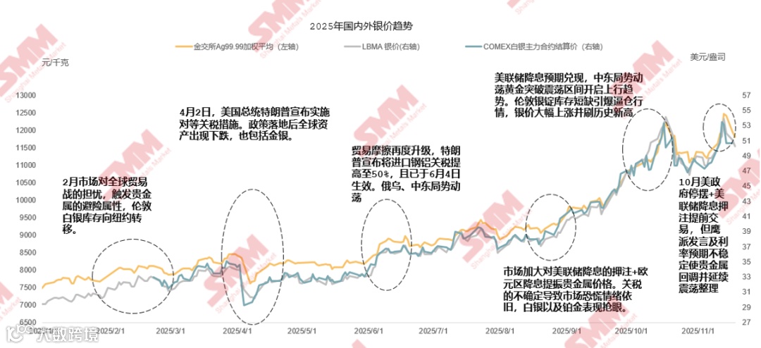 其对2015-2025年金交所银价和LBMA银价走势情况进行了回顾。