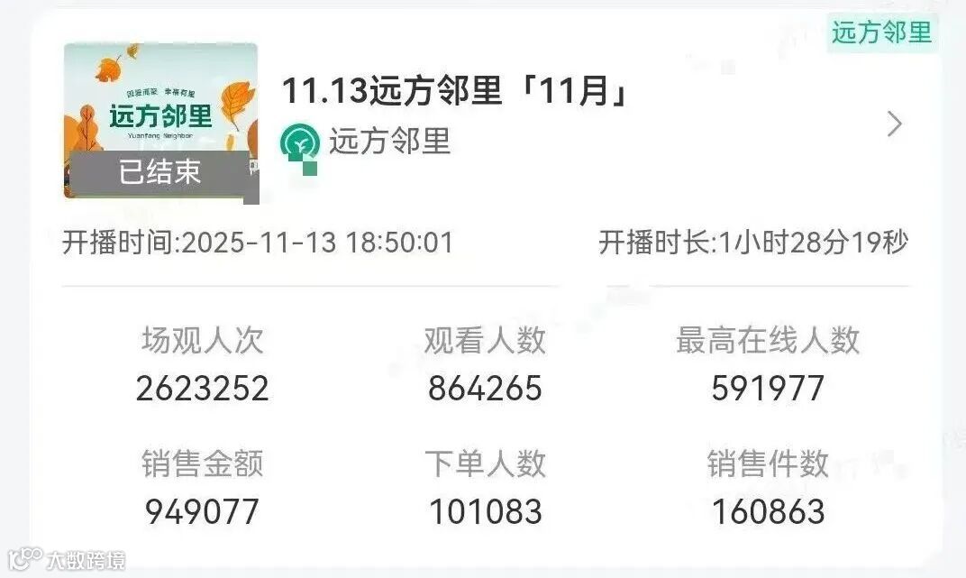 从私域直播的角度来看,10月份远方安选直播间开播日进播44万人,同时在线30W人,下单不到5万人,当天销售件数7万多件,11月份进播86万人,同时在线59万人,下单10万人,销售16万件,叠加8、9两个月的直播间数据,请教诸位看官,同时在线100W人的直播间,是不是也是私域直播卖货史上的一个商业奇迹?