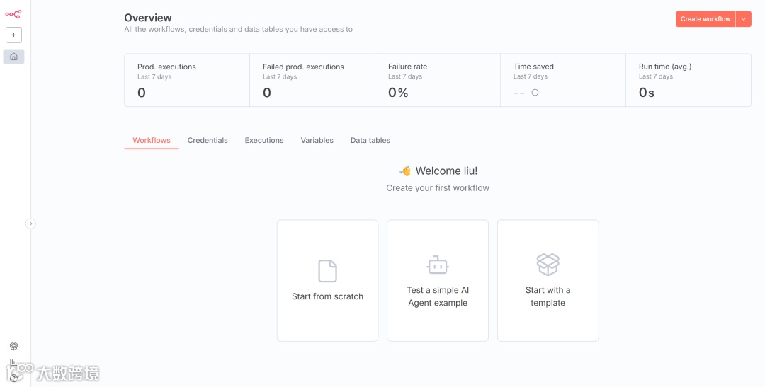 这样就完成了n8n的部署,可以开始配置工作流了。