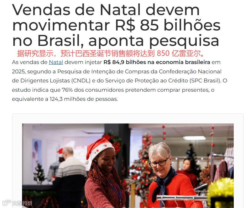 若计入线下渠道,巴西全国零售商联合会(CNDL)与SPC Brasil联合调研显示:2025年有76%的消费者计划购买圣诞礼物(约1.243亿人),整体圣诞销售额预计达849亿雷亚尔,为全年最重要消费节点之一[2]。