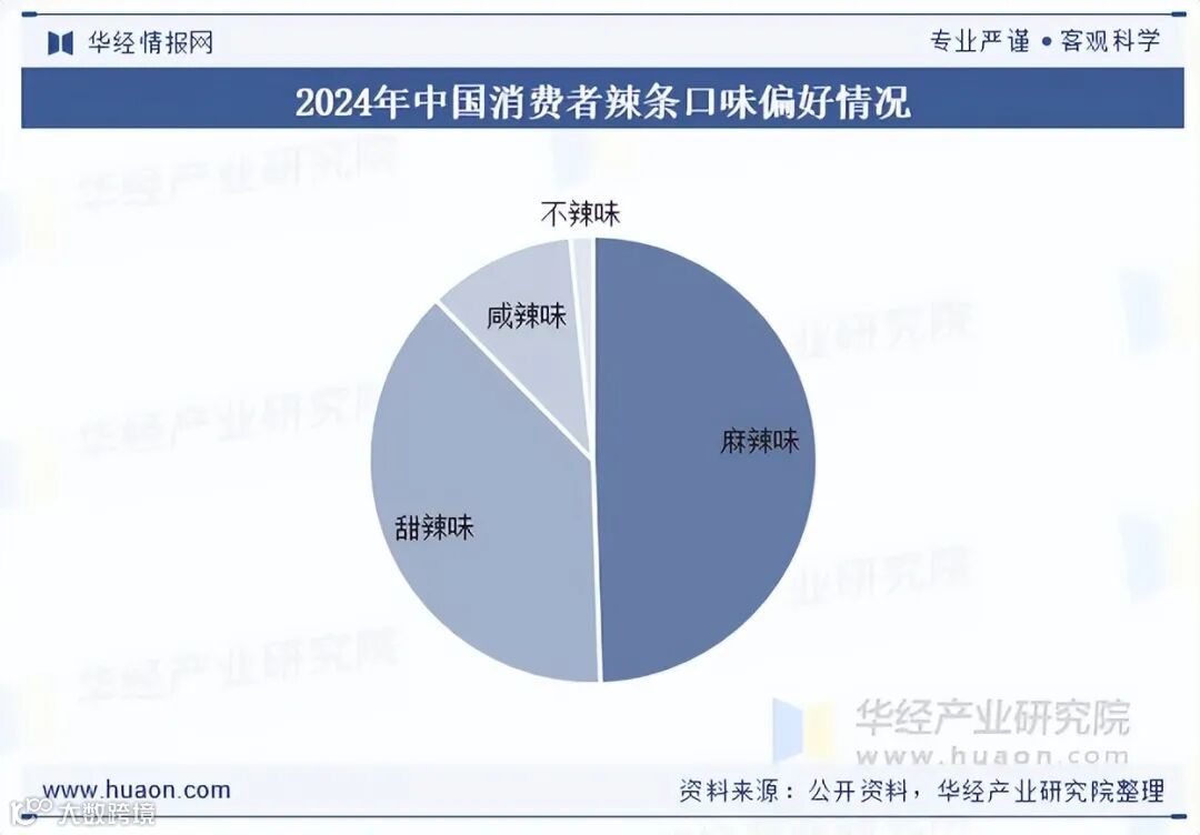 2024年,麻辣口味辣条消费者偏好度达49.3%,位居各口味之首。随着健康意识提升,消费者对低脂、低盐、高纤维等健康型辣条需求上升,推动企业加快产品升级与创新。