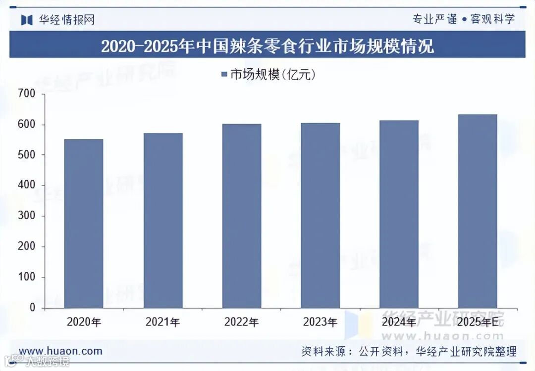 辣条消费场景已从校园延伸至家庭聚会、户外出行、办公室下午茶等多种场景,消费群体广泛。尽管头部品牌如卫龙、麻辣王子等具备一定市场优势,但整体行业集中度较低,市场竞争激烈。2024年,中国辣条行业市场规模约达615.1亿元,持续保持增长态势。