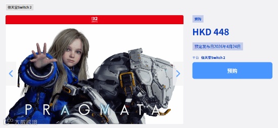 卡普空科幻游戏《Pragmata/虚实万象》将推出Switch2版,现已在eShop开启预购。标准版售价448HKD、豪华版售价518HKD、豪华升级包售价108HKD。