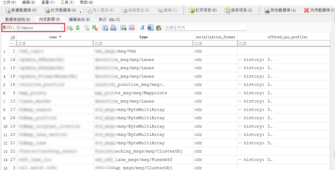 需要注意,.db3 的解析依赖 msg 定义,因此必须保证 messages 文件齐全。也可以通过数据库工具(如 DB Browser)在 topics 表中检查是否有缺失的 msg。