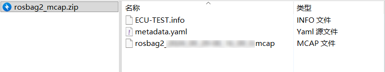 对于 .db3 格式数据需要所有使用到的 messgaes 、ECU-TEST.info 和 metadata.yaml 定义声明文件,并将这四类文件按下图的结构打包在一个 .zip文件中。