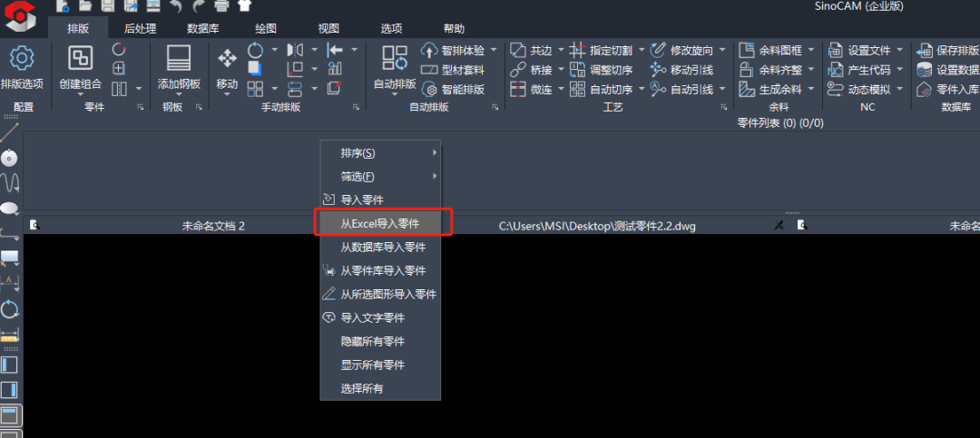 1. 零件列表区右击,选择“从Excel导入零件”。