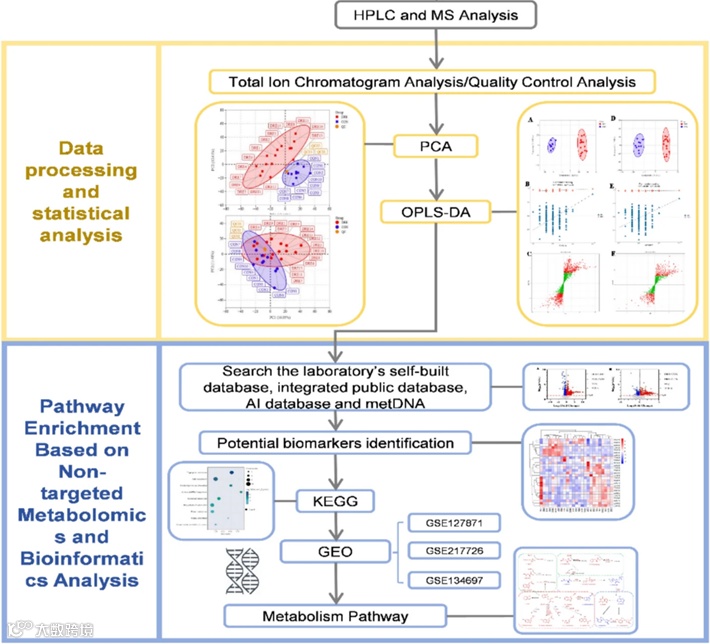 “非靶向代谢组学”指的是在样本中进行尽可能广泛的小分子检测,而不是只锁定若干预先设定的化合物。其典型流程为:样本提取 → 分离(如液相色谱LC 或气相色谱GC)→ 质谱(MS)采集高分辨率数据 → 特征检测/峰提取 → 特征定性/注释或鉴定 → 统计分析与生物学解读。