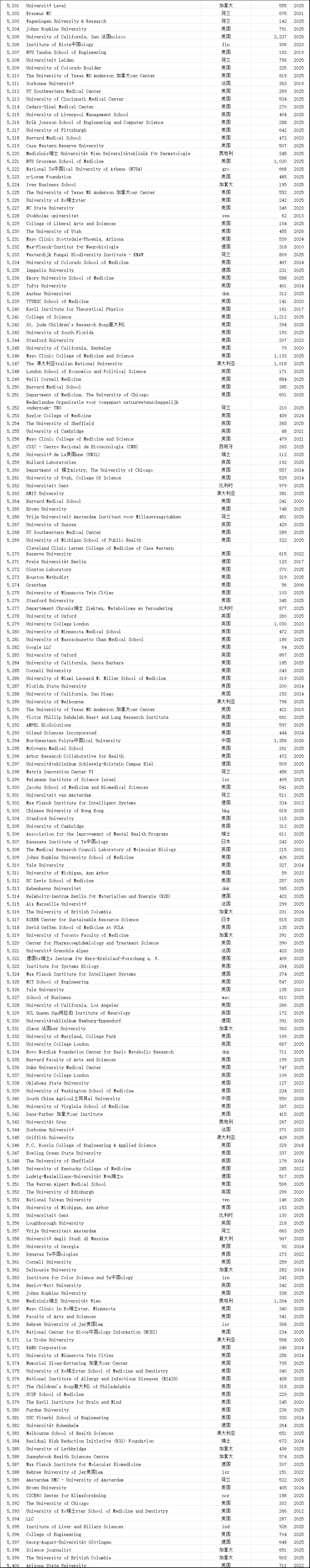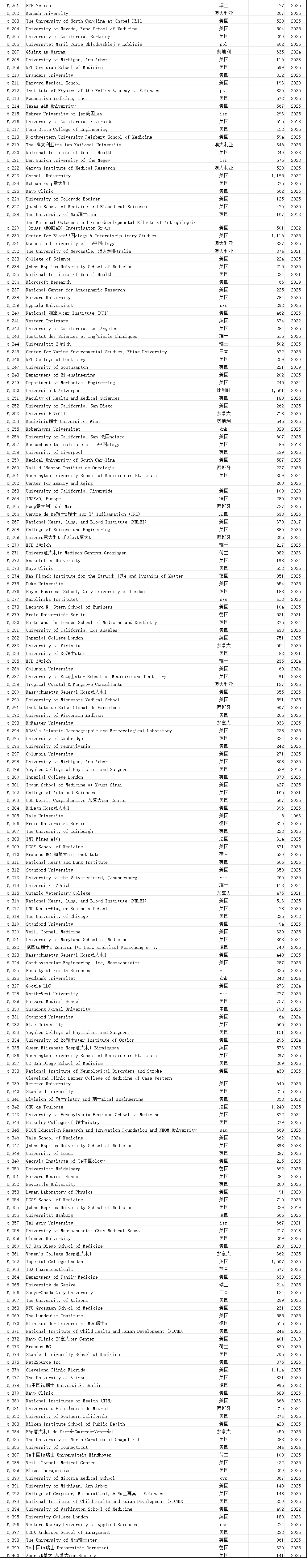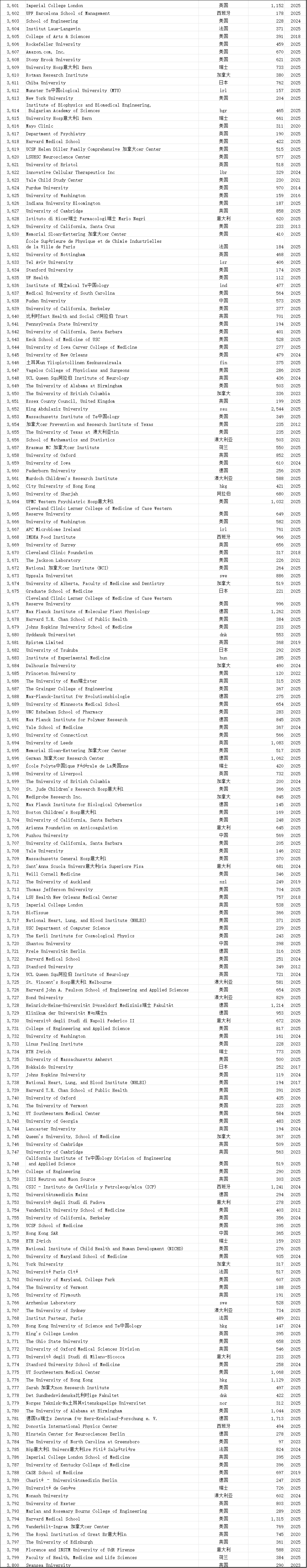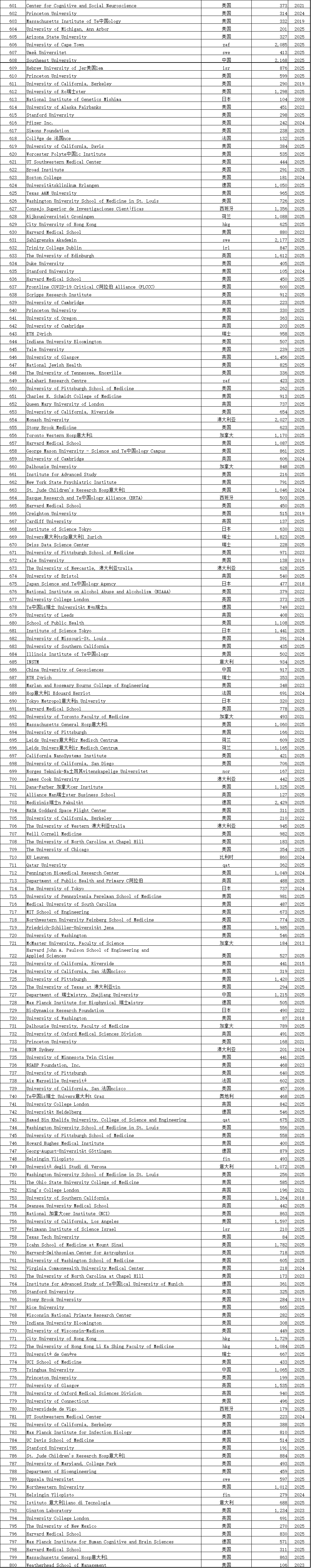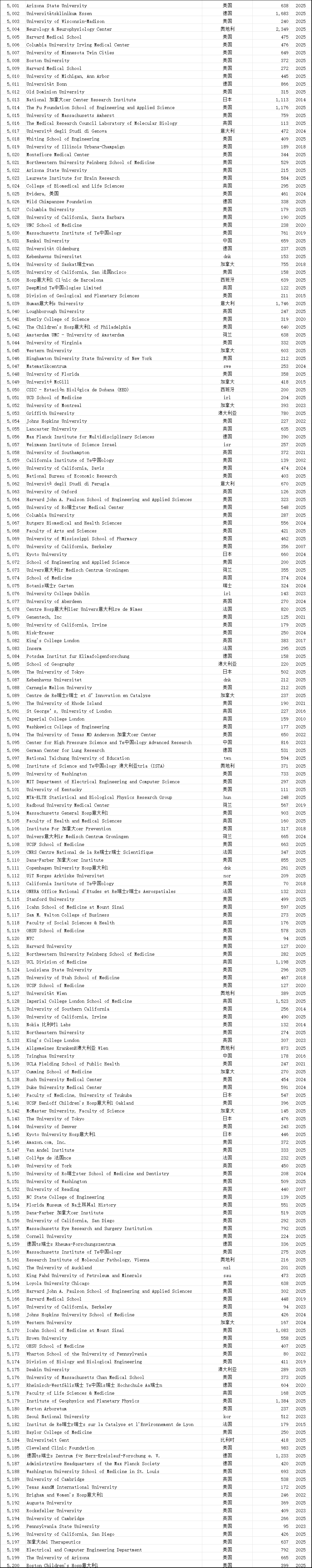 中国学术界在此次榜单中表现突出。共有12,374位中国学者进入“终身科学影响力排行榜”,31,685位学者入选“2025年年度影响力榜单”,涉及全国600多所高校。这一数据较往年有明显增长,展现了中国科研影响力的持续提升。