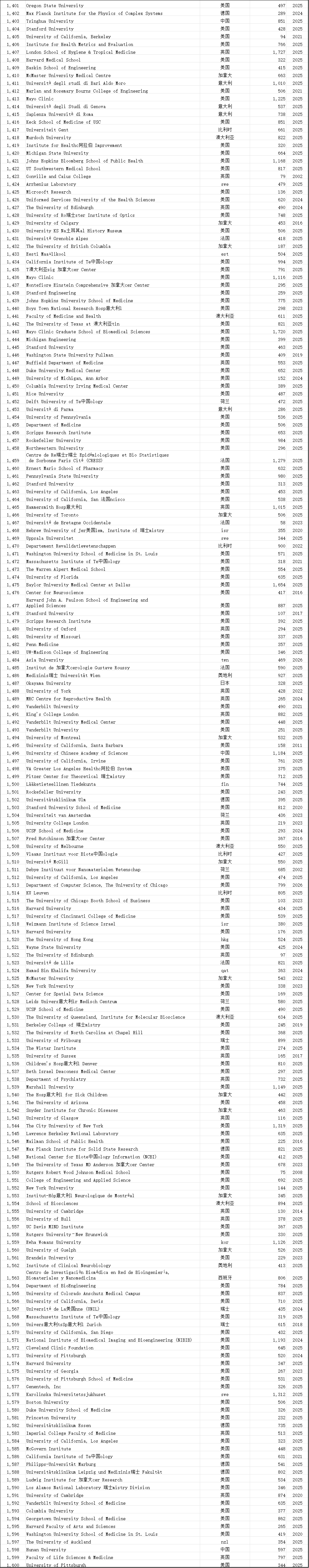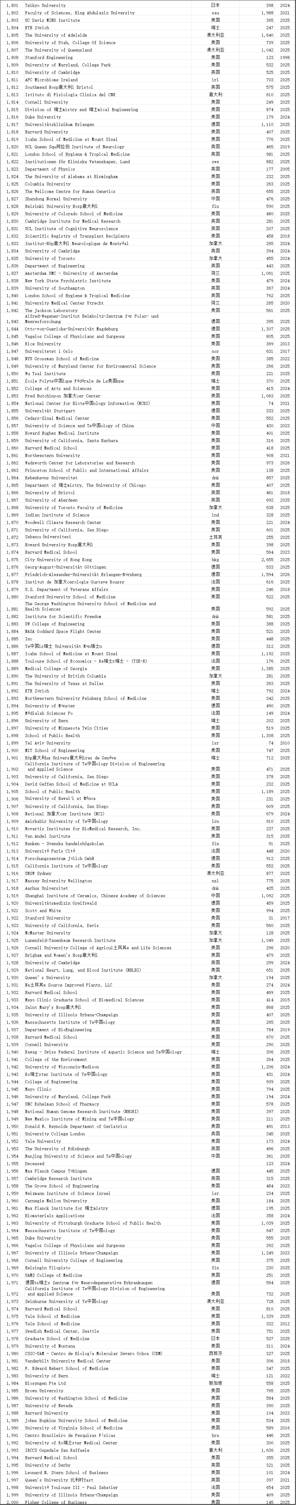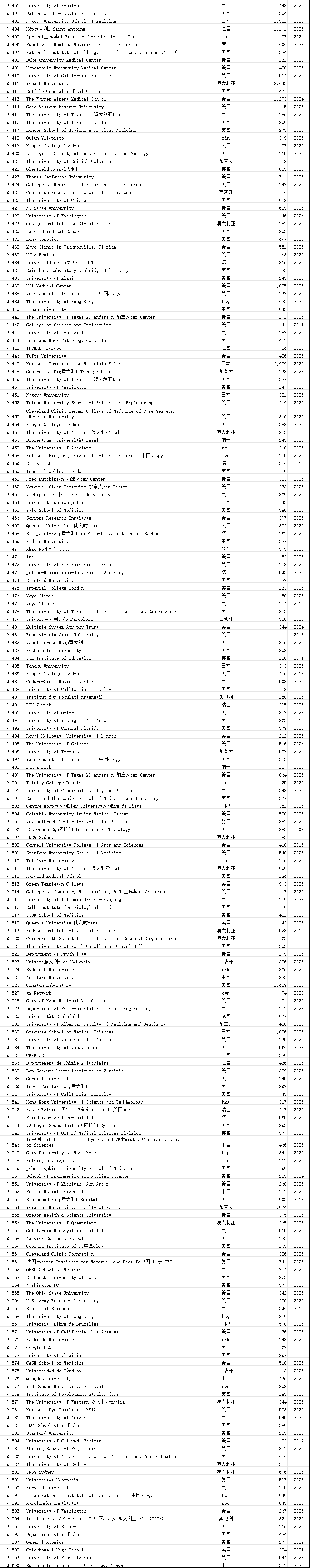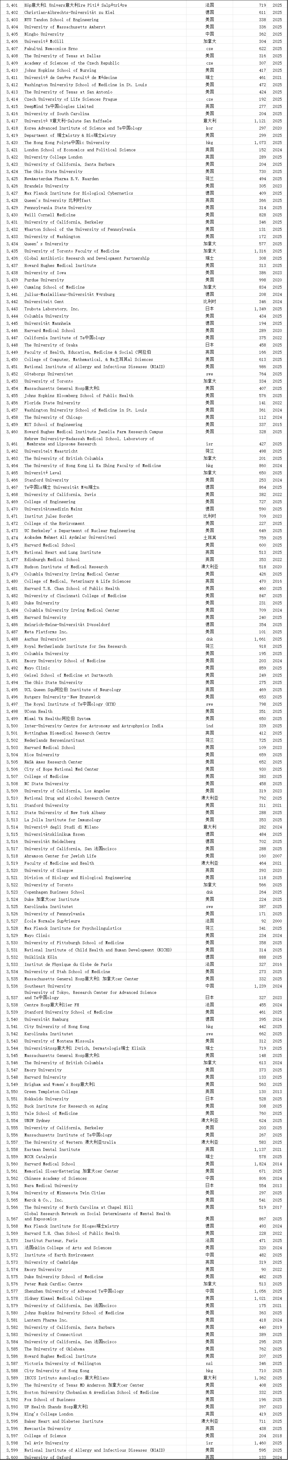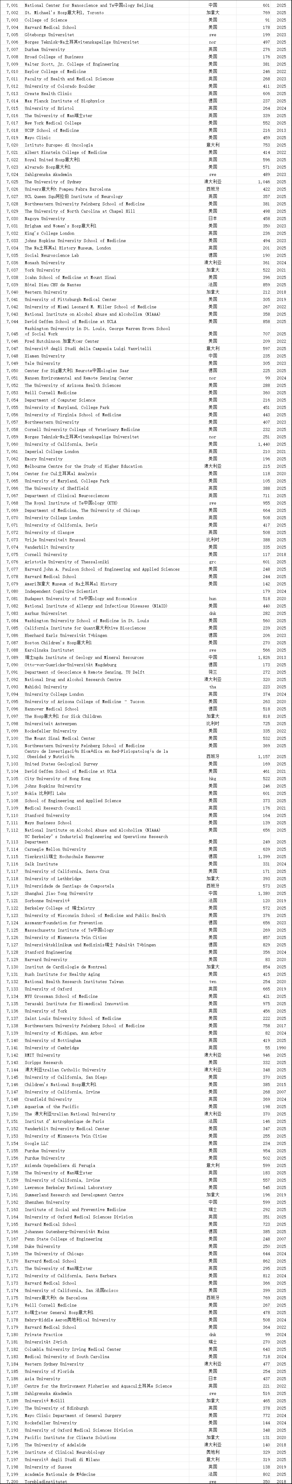 中国学术界在此次榜单中表现突出。共有12,374位中国学者进入“终身科学影响力排行榜”,31,685位学者入选“2025年年度影响力榜单”,涉及全国600多所高校。这一数据较往年有明显增长,展现了中国科研影响力的持续提升。