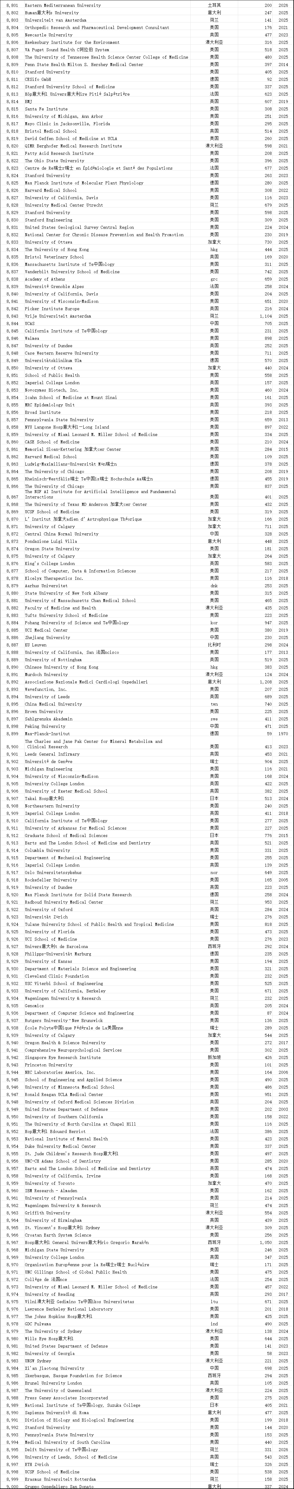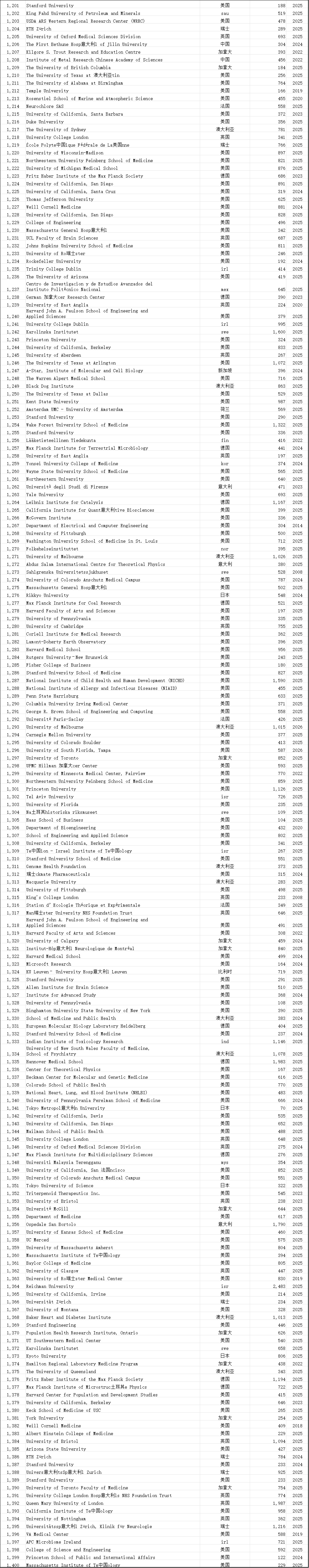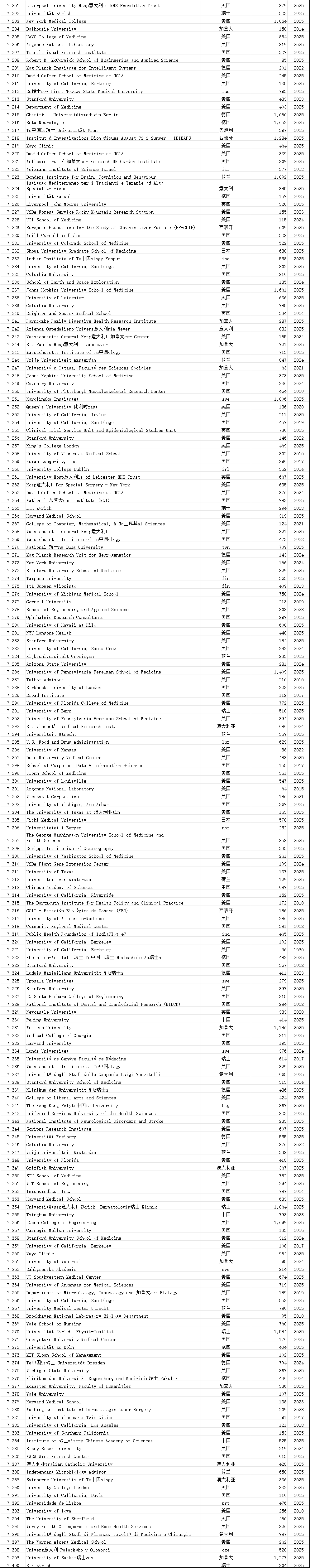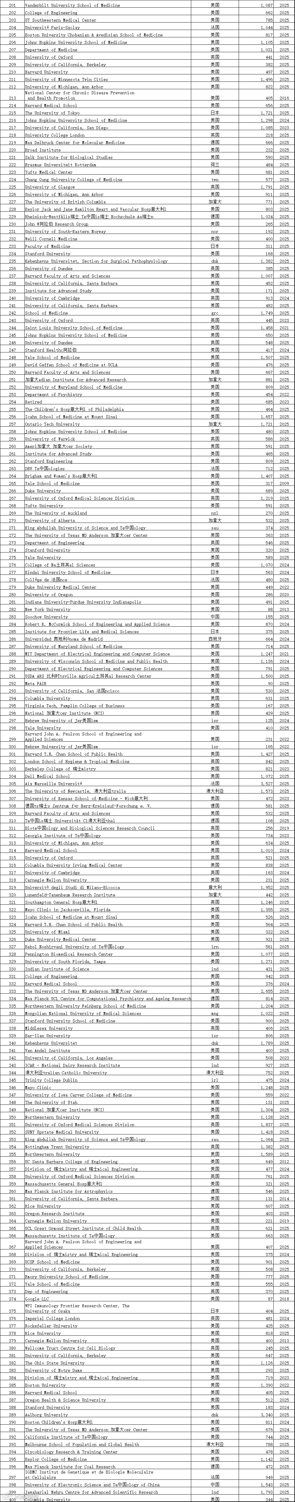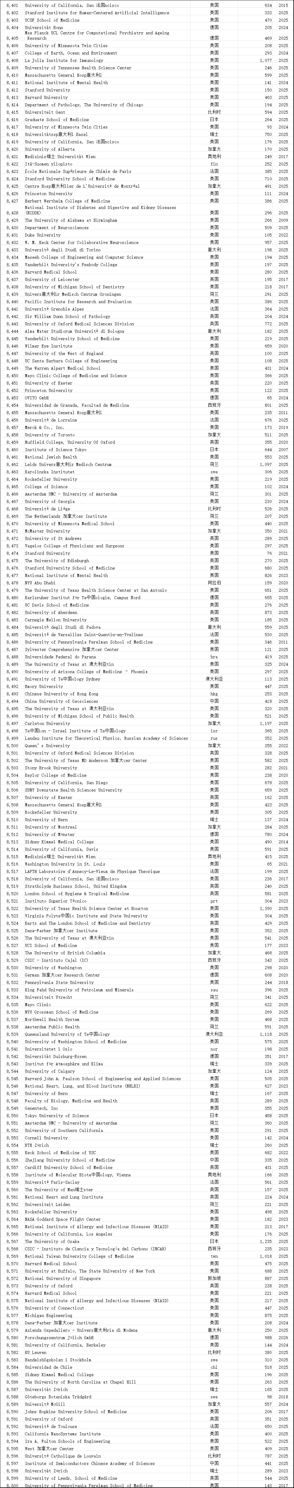 中国学术界在此次榜单中表现突出。共有12,374位中国学者进入“终身科学影响力排行榜”,31,685位学者入选“2025年年度影响力榜单”,涉及全国600多所高校。这一数据较往年有明显增长,展现了中国科研影响力的持续提升。