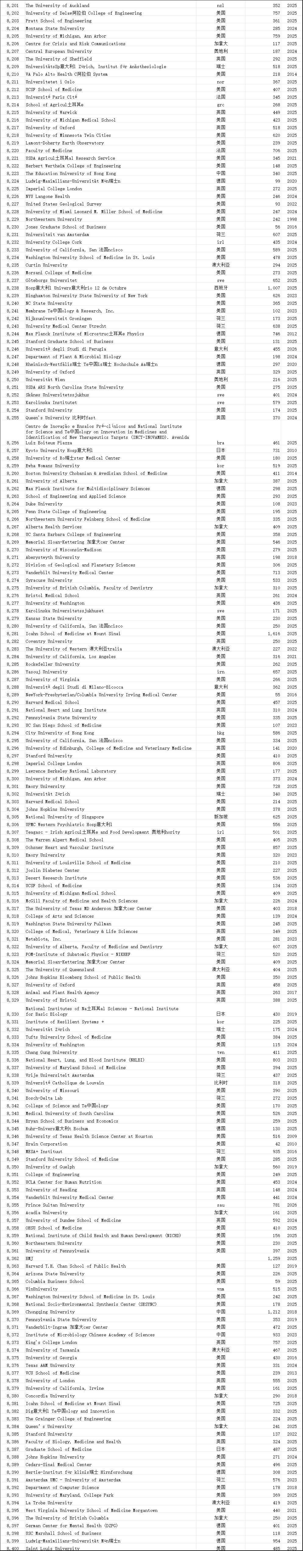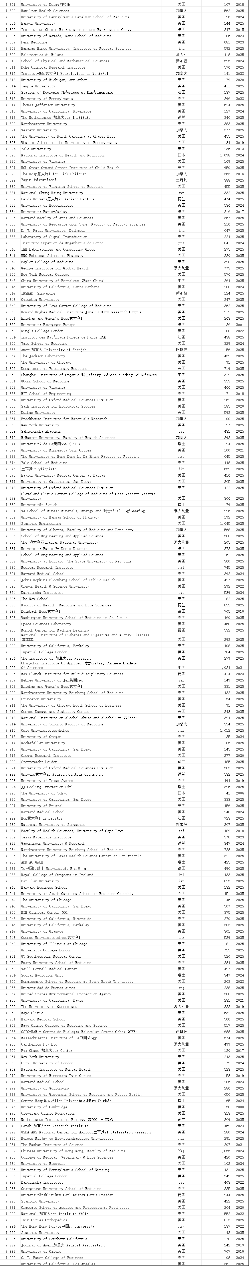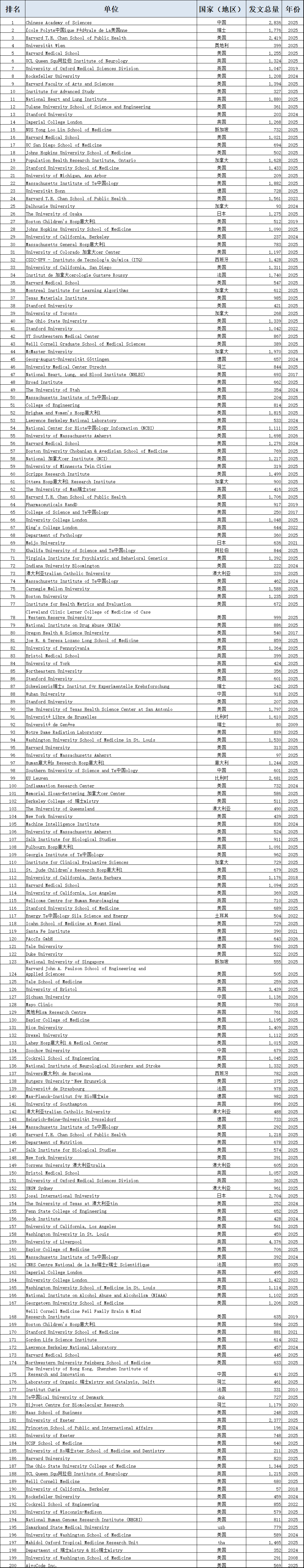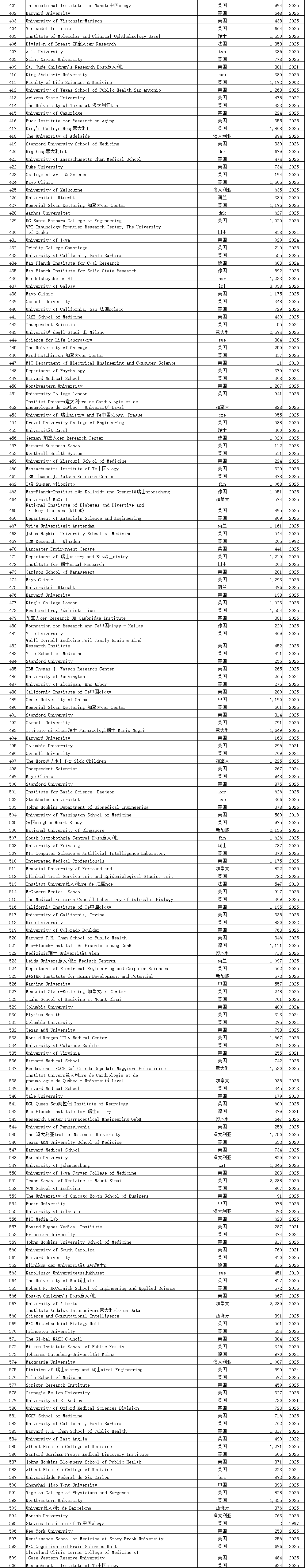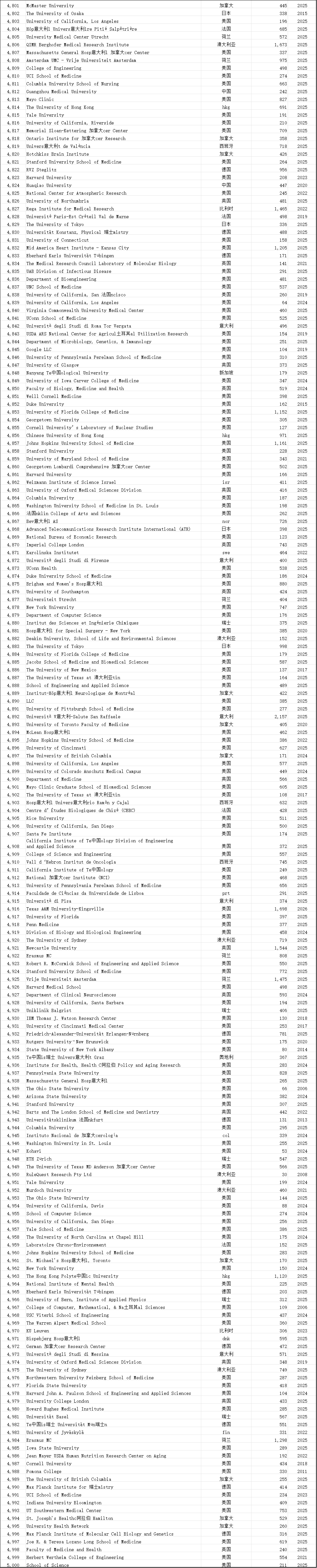 中国学术界在此次榜单中表现突出。共有12,374位中国学者进入“终身科学影响力排行榜”,31,685位学者入选“2025年年度影响力榜单”,涉及全国600多所高校。这一数据较往年有明显增长,展现了中国科研影响力的持续提升。