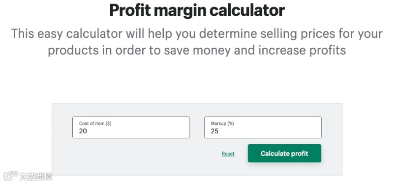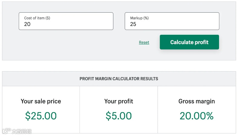 比如独立站Shopify就有利润率计算器,亚马逊等平台也有。以Shopify为例,它采用成本加成定价策略,计算产品制造的总成本,然后添加百分比加价来确定最终售价。