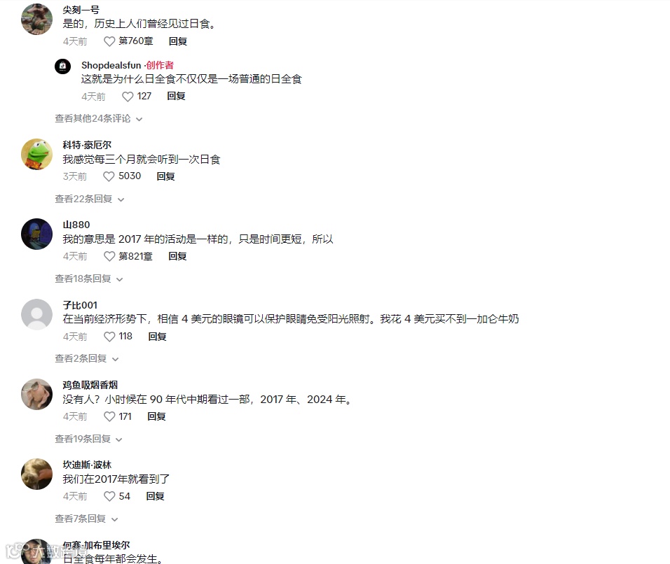 根据TikTok等社交媒体用户对北美日全食的讨论情况来看,许多用户还打算在日食来临之际,与亲朋好友一起举办日食派对。